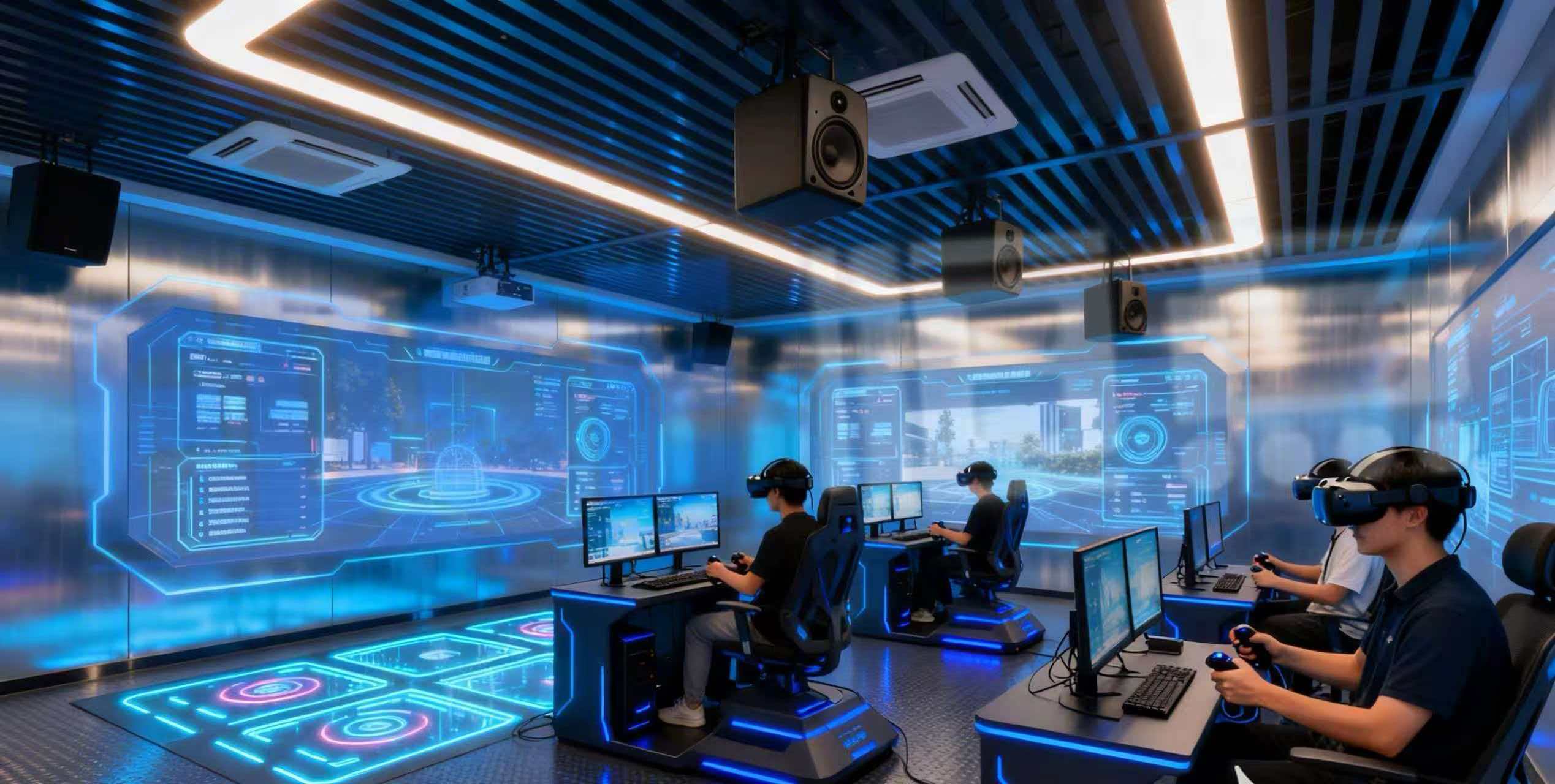 在"新双高计划"驱动下,数字媒体专业需聚焦"技术+艺术+产业"三维融合,通过虚拟仿真实训基地破解产学脱节难题。恒点数字媒体艺术虚拟仿真实训室,其通过3D-LED交互显示大屏、数字创作全流程XR工作站、高精度动捕系统等设备,构建虚实融合的创新实践教学体系,实现教学资源全生命周期管理。