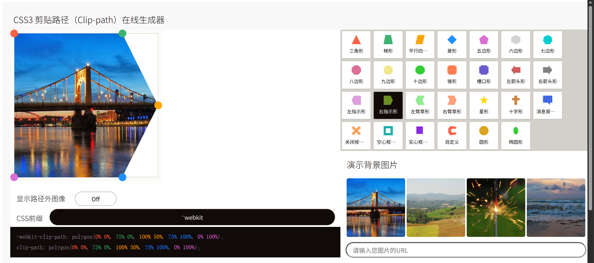 可视化工具:HTML5在线工具 。在该页面可直接构造想要的形状并获取CSS格式