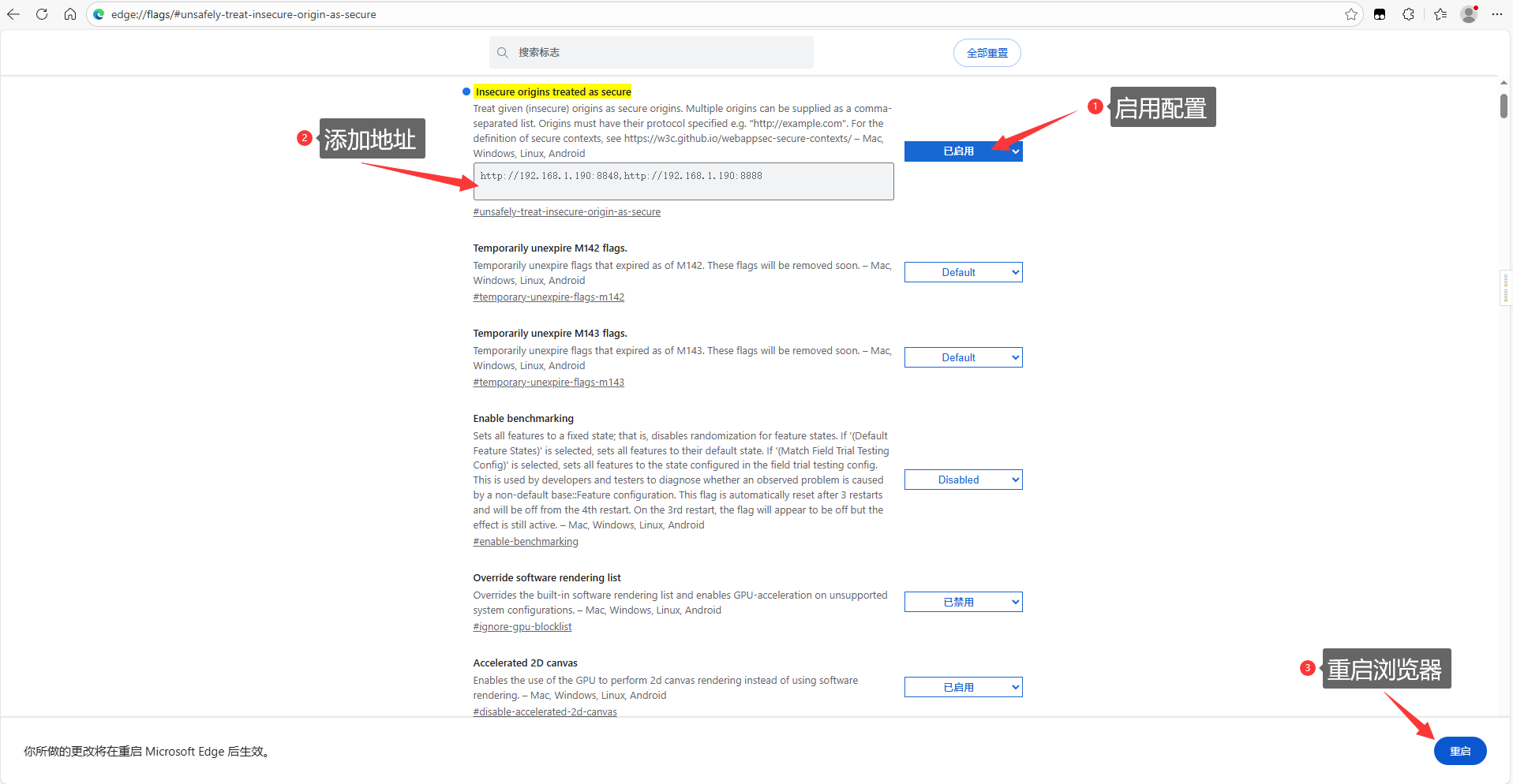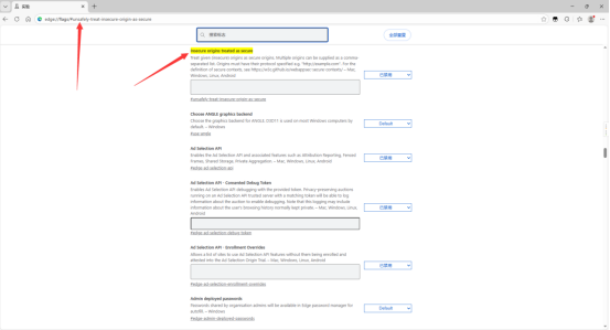 Edge:edge://flags/#unsafely-treat-insecure-origin-as-secure