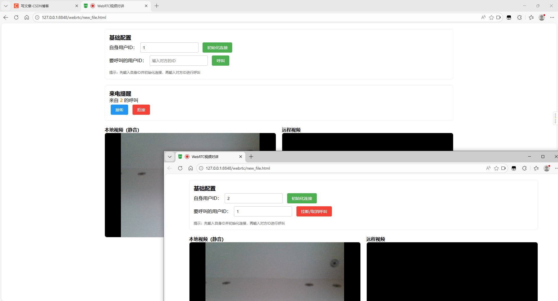WebRTC负责浏览器间直接的音视频数据传输,HTML负责前端音视频的采集和展示,信令服务器则是 "牵线搭桥" 的角色,解决WebRTC无法直接交换连接信息的问题。本文以实现网页端之间的视频通话为主,安卓端需要自行开发测试,原理是相通的。