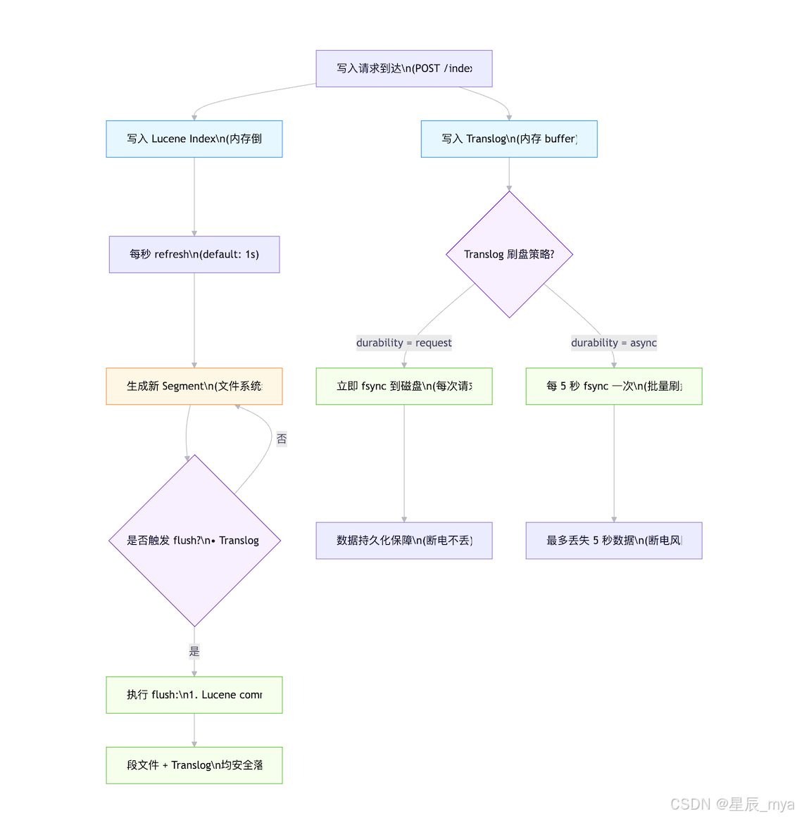 - 写入请求到达 → 写入 Translog(内存 buffer)