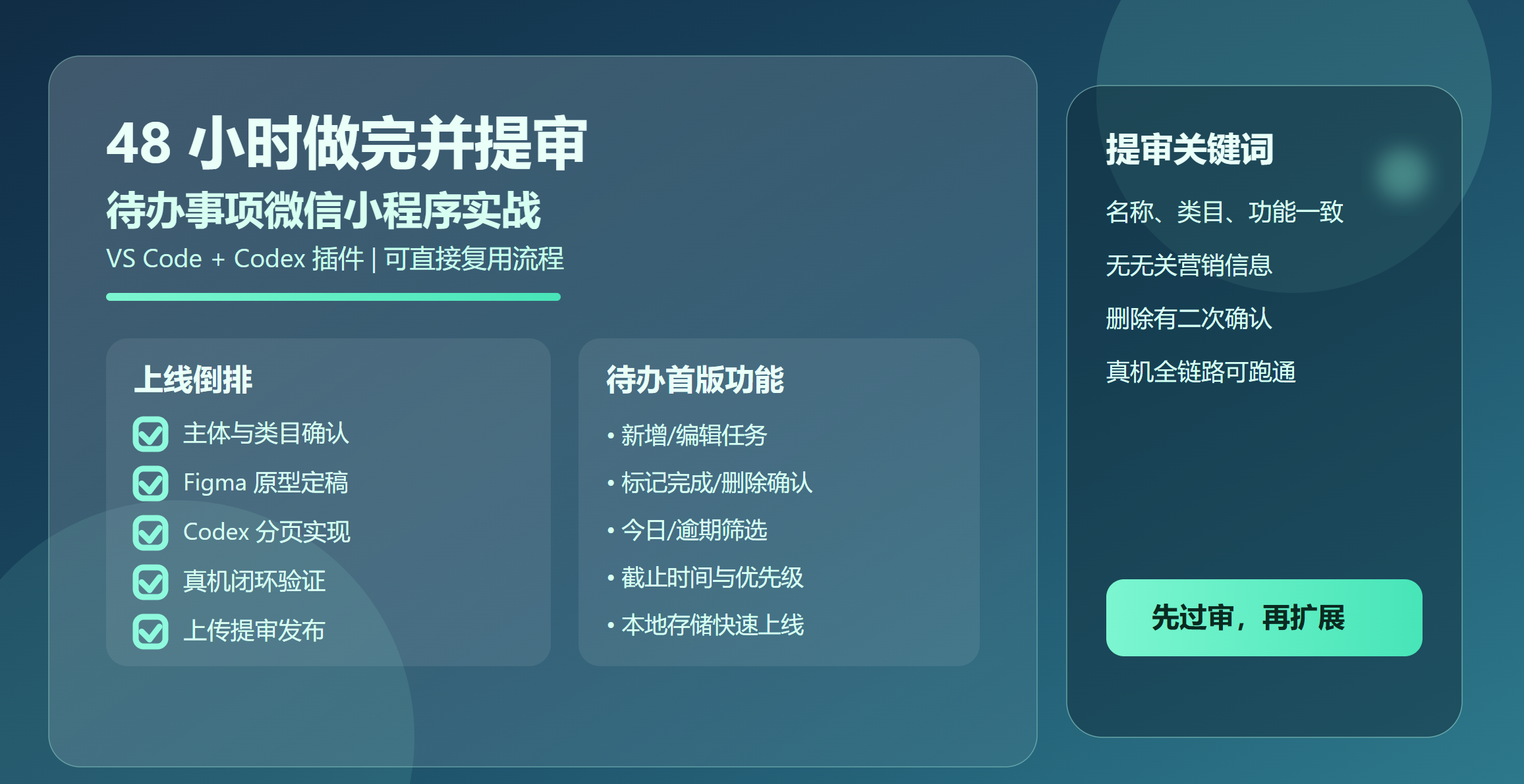 48 小时做完并提审:待办事项微信小程序实战(VS Code + Codex 插件)