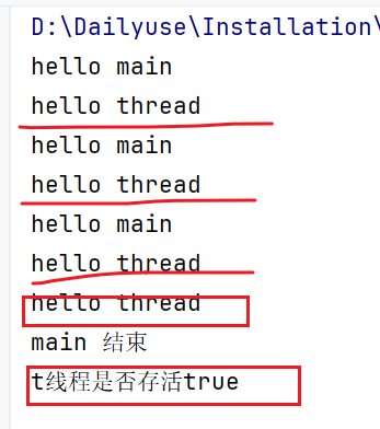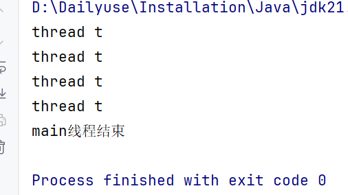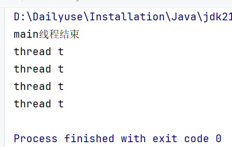 可能有的同学会有疑问,为什么有关主线程的for循环了三次,但是true被打印了四次--> 第4次打印和t的结束不一定是谁先谁后