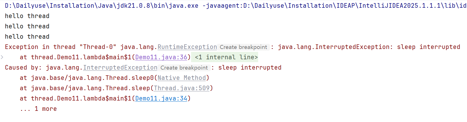 catch (InterruptedException e) {//sleep操作没按照约定正常执行