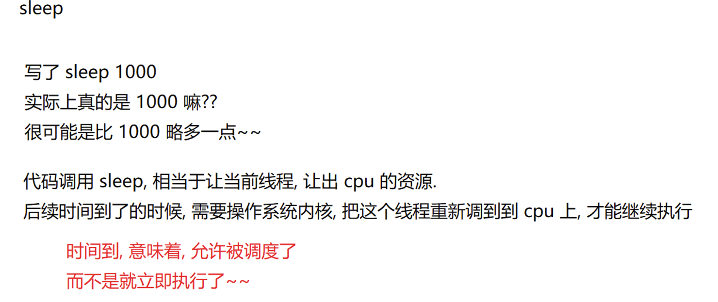 sleep是静态方法,目的是让线程暂时放弃cpu,休息一会儿,过了指定时间再去执行
