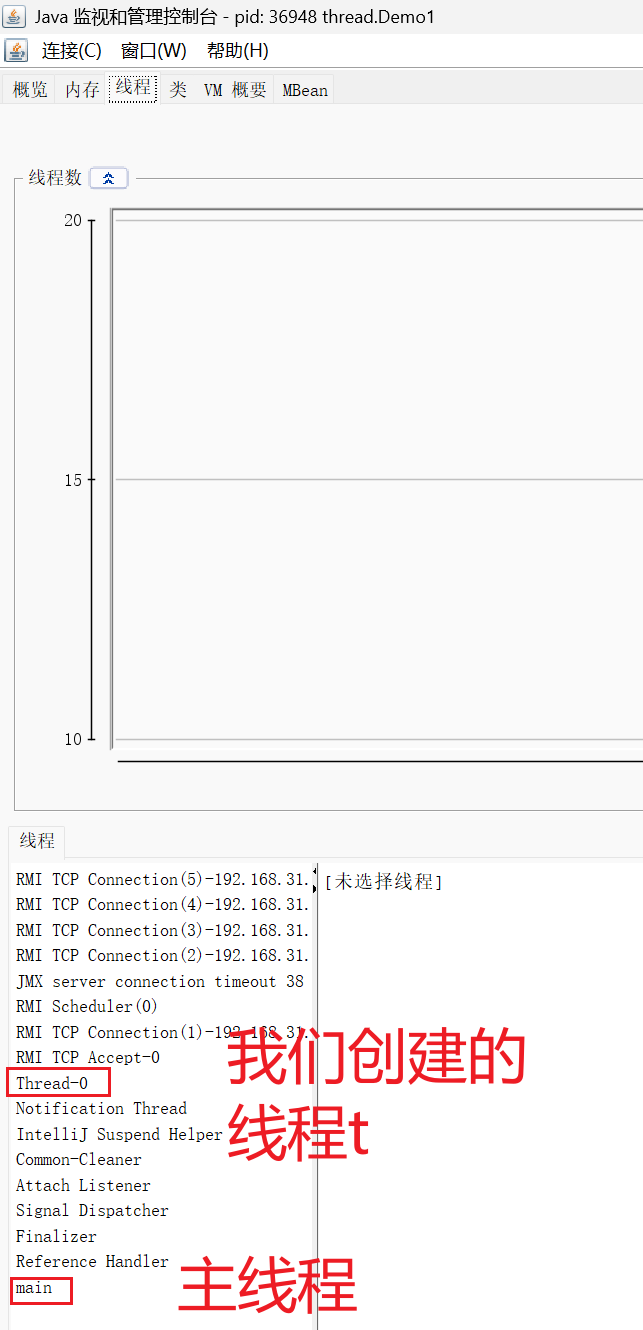 Thread对象的生命周期,和系统中的线程生命周期,是不同的(可能存在,Thread对象还存活,但是系统中的线程已经销毁的情况)-->如图下所示:main线程已经结束,但是t线程仍然存活