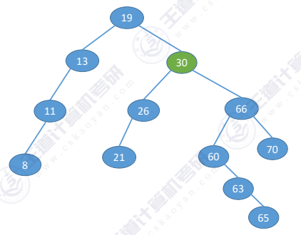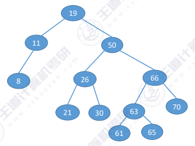 下图二叉树的中序遍历序列为:8 → 11 → 13 → 19 → 21 → 26 → 30 → 50 → 61 → 63 → 65 → 60 → 66 → 70