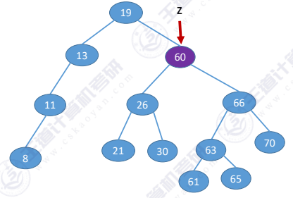 由二叉树的遍历序列可知,值为60的节点就是z的右子树的最左下节点,因此可以直接将60替换到z节点位置