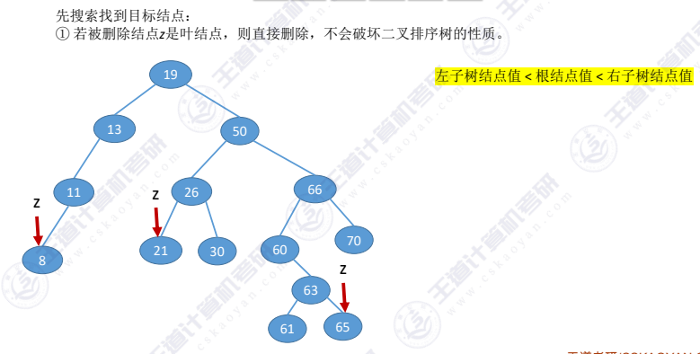 - 被删除节点z是叶子节点