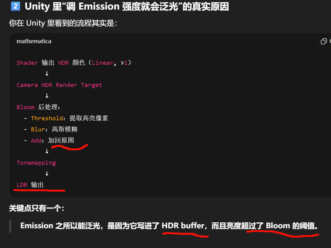 Emission 只是写入 HDR 颜色值
