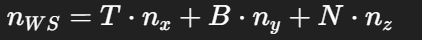 - nWS = normalize(T * nTS.x + B * nTS.y + N * nTS.z)