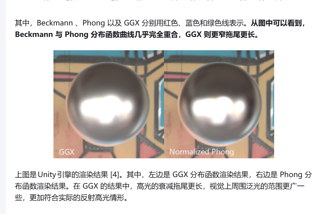 - D:法线分布函数(NDF),描述微表面法线朝向的统计分布。