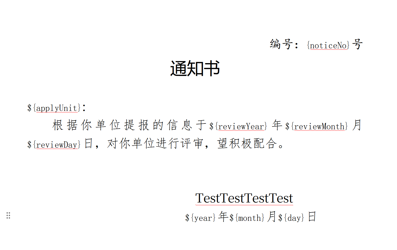 * @param templateName 模板文件名(如reviewNotice.ftl,放src/main/resources下)