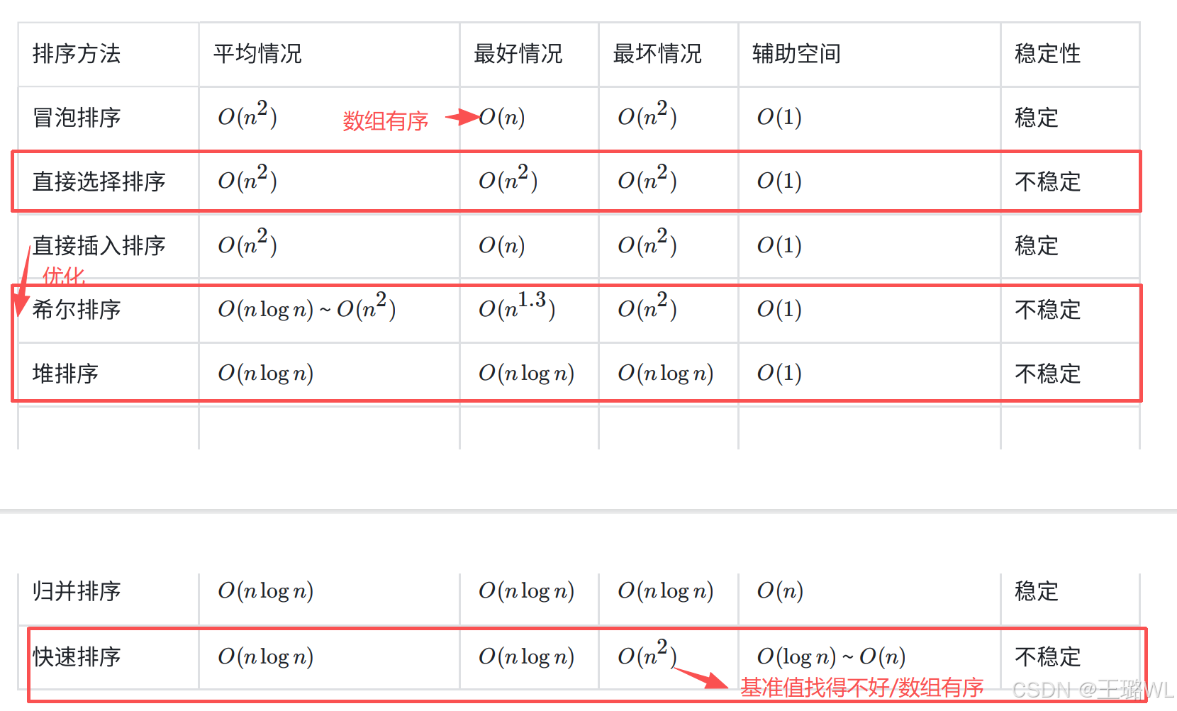 - 时间复杂度:O(n2) 【最差情况:1+2+......+n-1,最好情况(O(n)):1+1+......+1】