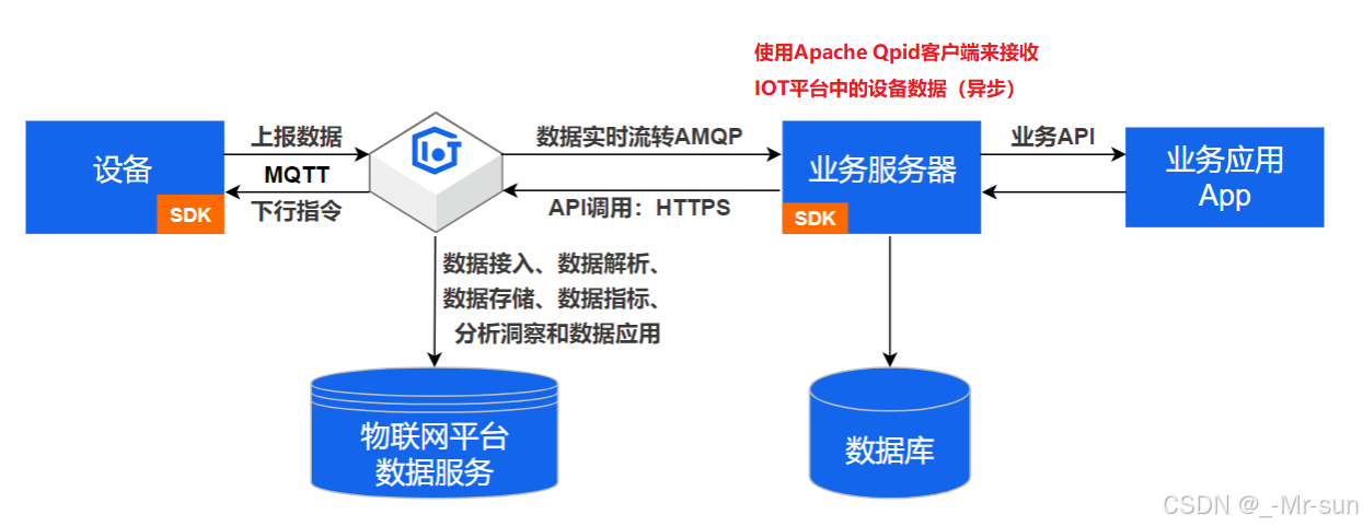 今天我们会在课程中快速使用Apache Qpid软件来接收IOT中的数据,如下图