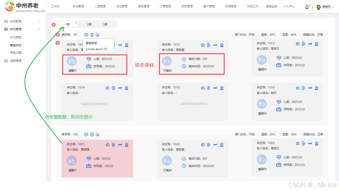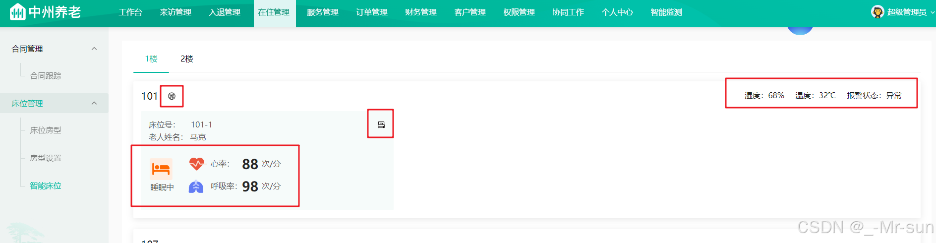 - 家属端登录人需要绑定带有智能手表设备的老人
