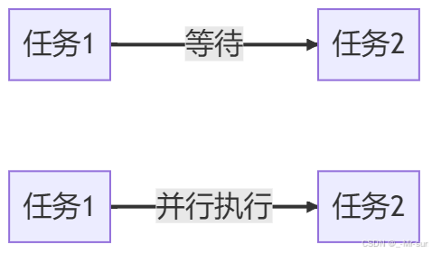 - 异步模式下,任务1和任务2可以并行执行,彼此之间相互独立,不需要等待对方的完成。这种并行执行的方式称为异步。