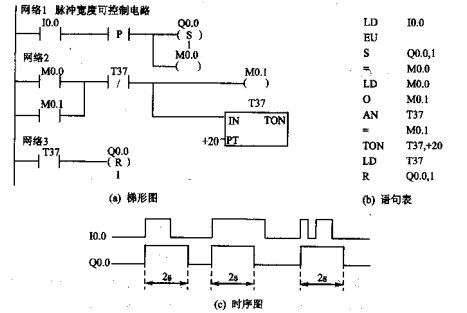 - 定时器 T37 :核心计时元件。其常闭触点控制脉冲宽度 ,其常开触点负责系统复位。