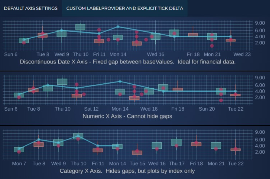 - BaseValueAxis 与 DiscontinuousDateAxis ------ 支持更灵活的轴类型配置,方便处理非线性比例与金融类数据中的时间间隔缺失;