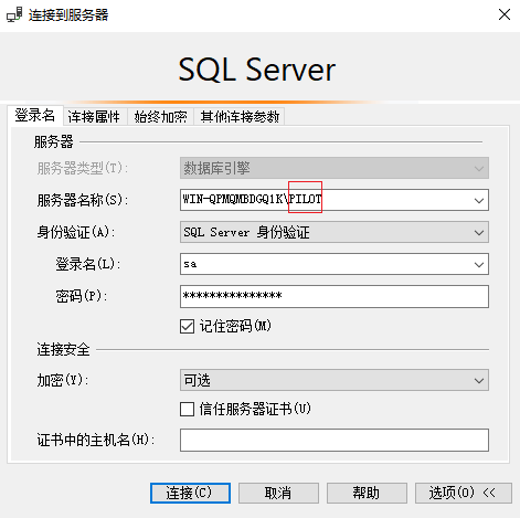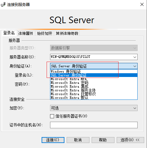 如果选择Windows身份验证,则ssms会使用本机的默认账户尝试登录;