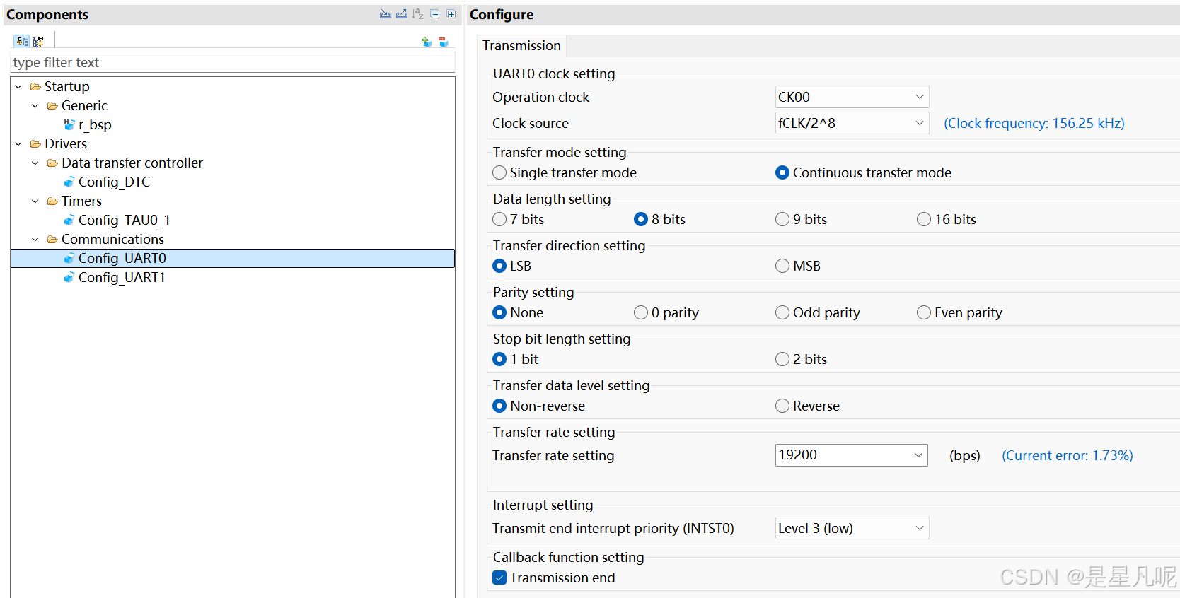 **前言:**RL78F24作为一款瑞萨的经典车规级应用的16bit的MCU,以其超低功耗而闻名。当有大量高频数据发送或接受的应用场景时,就需要用到其DTC,不同于32bitMCU的DMA,DTC属于轻量级的数据传输控制器。本篇博客就详细的介绍一下当有高频UART数据传输需求的时候,使用DTC的应用案例。