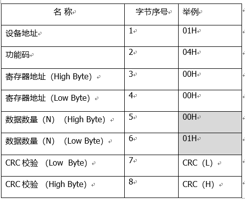 数据:主机发送协议中数据表示寄存器,从机应答协议中的数据表示上报的数据;