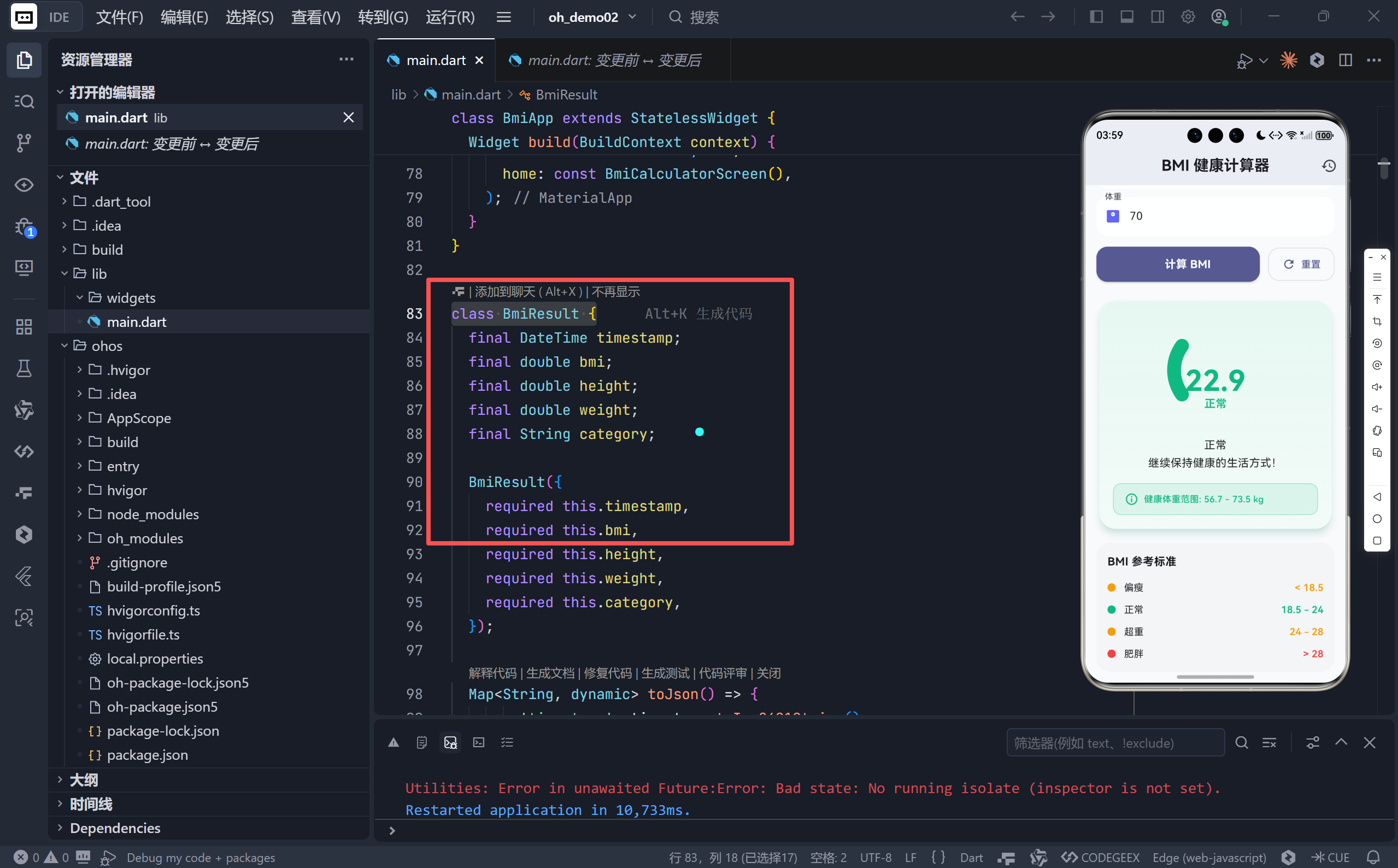 ✅ 优化点:引入 BmiResult 模型类