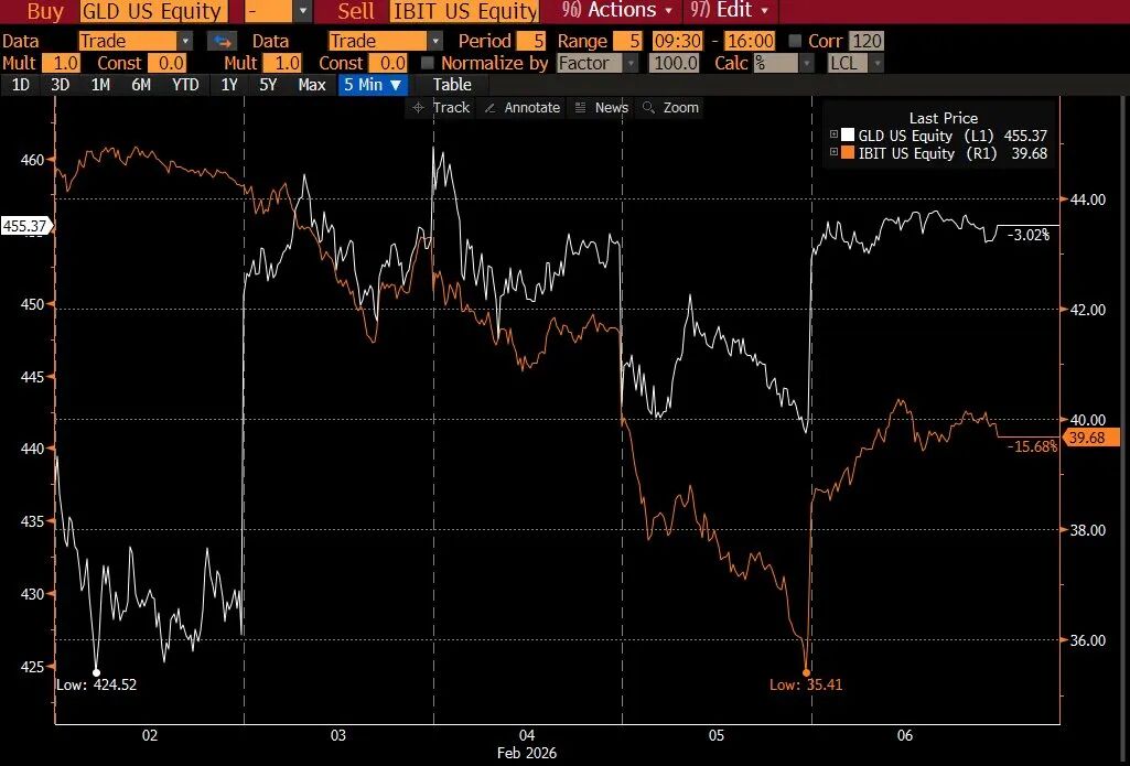 与此同时,我们看到过去几周IBIT的价格走势与软件股及其他风险资产之间存在极高的相关性。高盛的主经纪商(PB)柜台也发布报告称,2月4日是多策略基金表现最差的单日之一,Z分数达到 3.5。这是一个发生概率仅为0.05% 的事件,比3西格玛事件还要罕见10倍。这简直是灾难性的。通常正是在这类事件发生后,「波段交易公司」(Pod Shops,指多经理对冲基金平台)的风控经理会介入,要求所有人不分青红皂白地紧急降低总敞口(de-gross)。这也就解释了为什么2月5日同样是一场血腥的屠杀。