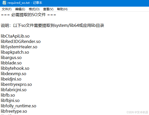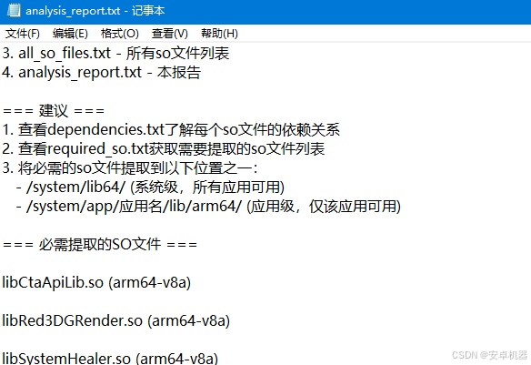 在rom修改定制过程中。有些客户需要内置的应用无法使用常规步骤进行内置。通常表现在内置的应用出现无法打开或者使用出现bug,这就是应用依赖库so文件的原因。当然解决方式也有很多,例如将应用根据当前设备cpu架构将so文件内置在apk应用中。或者使用自启脚本在开机状态自动安装等等。但我们需要了解在一个特殊应用中。那些so文件是软件运行必须的依赖库?
