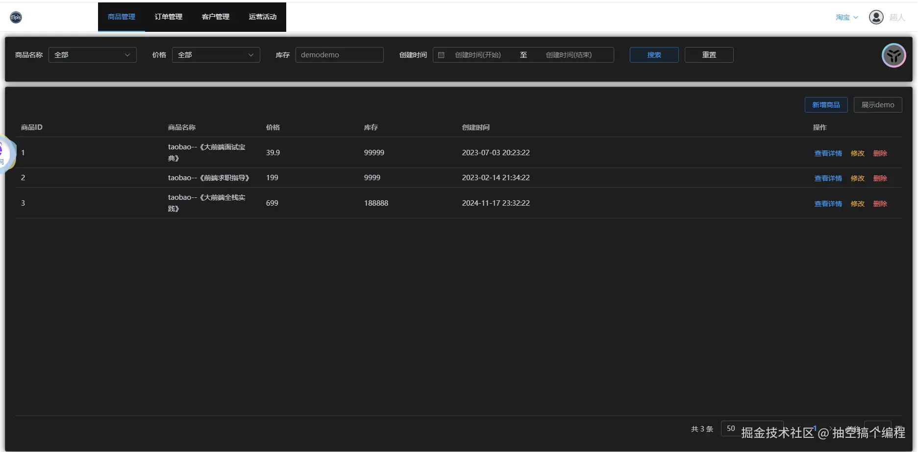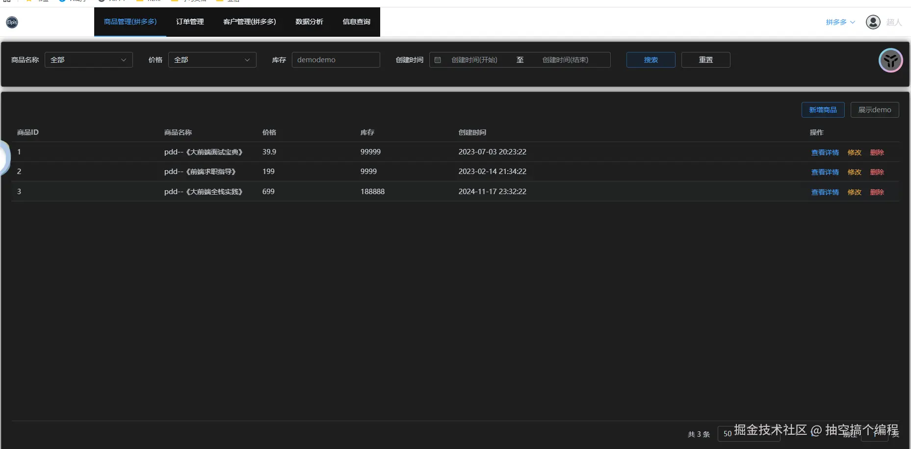 一张登录的系统是pdd,一张登录的系统是tb, 两个不同的系统,展示了一样的订单管理; pdd也展示了定制化的数据分析和信息查询; 还展示了在公共的基础上,可以有对自己系统的不同内容,商品管理(拼多多) tb也展示了定制化的运营活动;