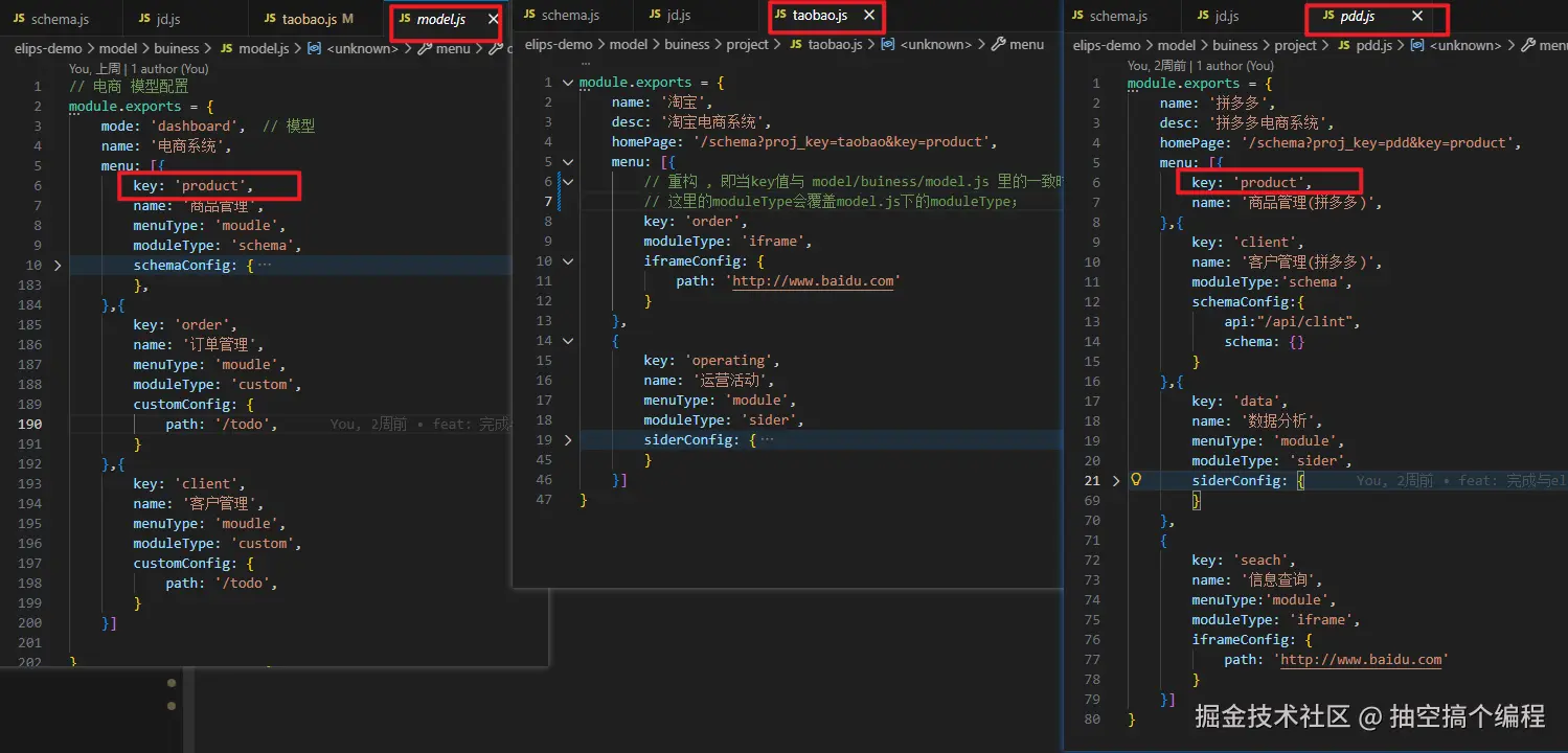 model.js 配置的是公共能力;