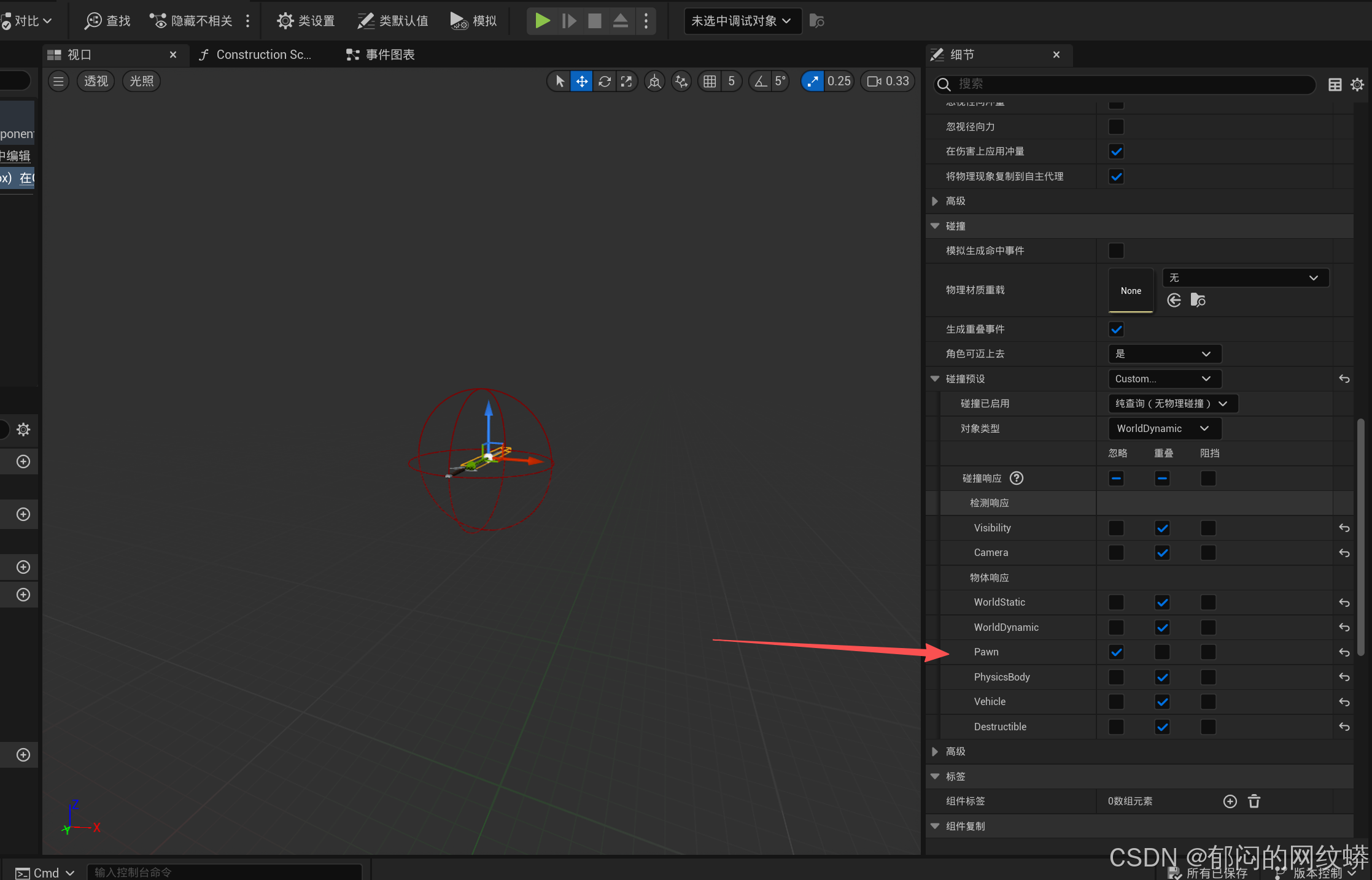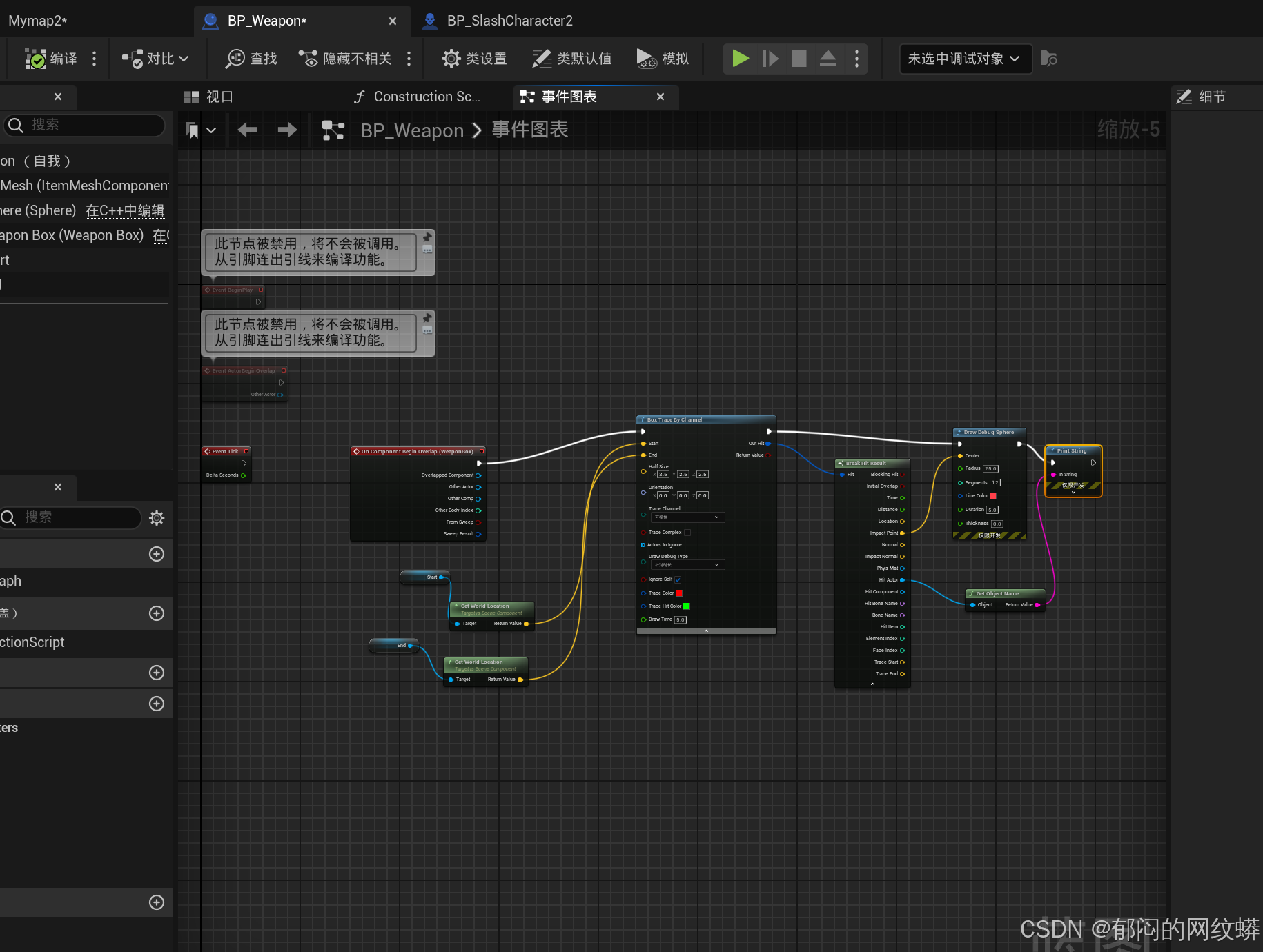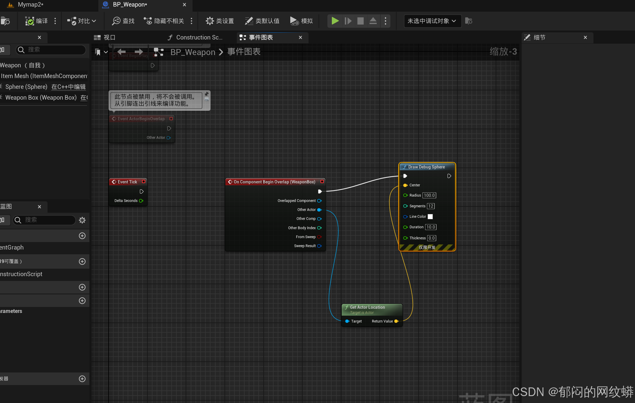 - 武器与物品无法触发重叠事件的原因?勾选生成重叠事件,查看物品的碰撞设置。