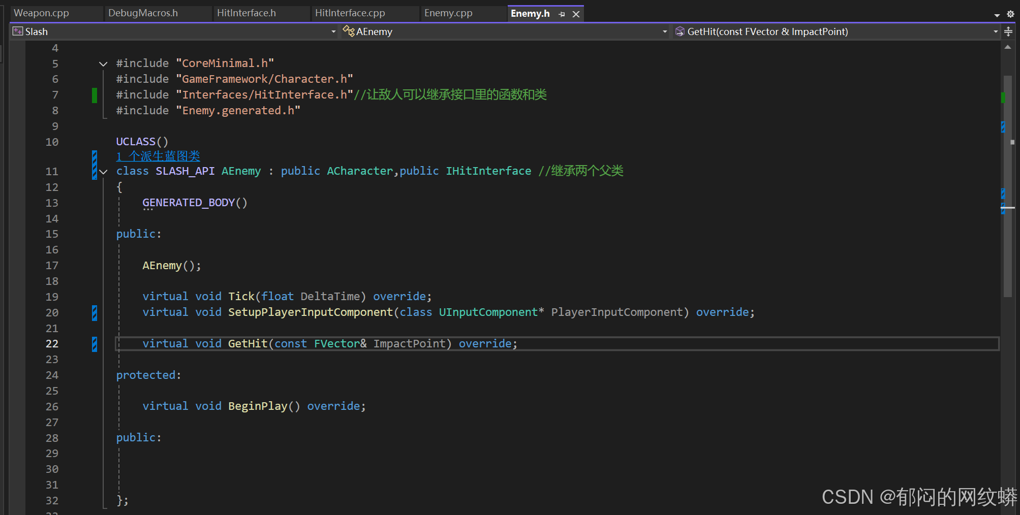 class SLASH_API AEnemy : public ACharacter,public IHitInterface //继承两个父类
