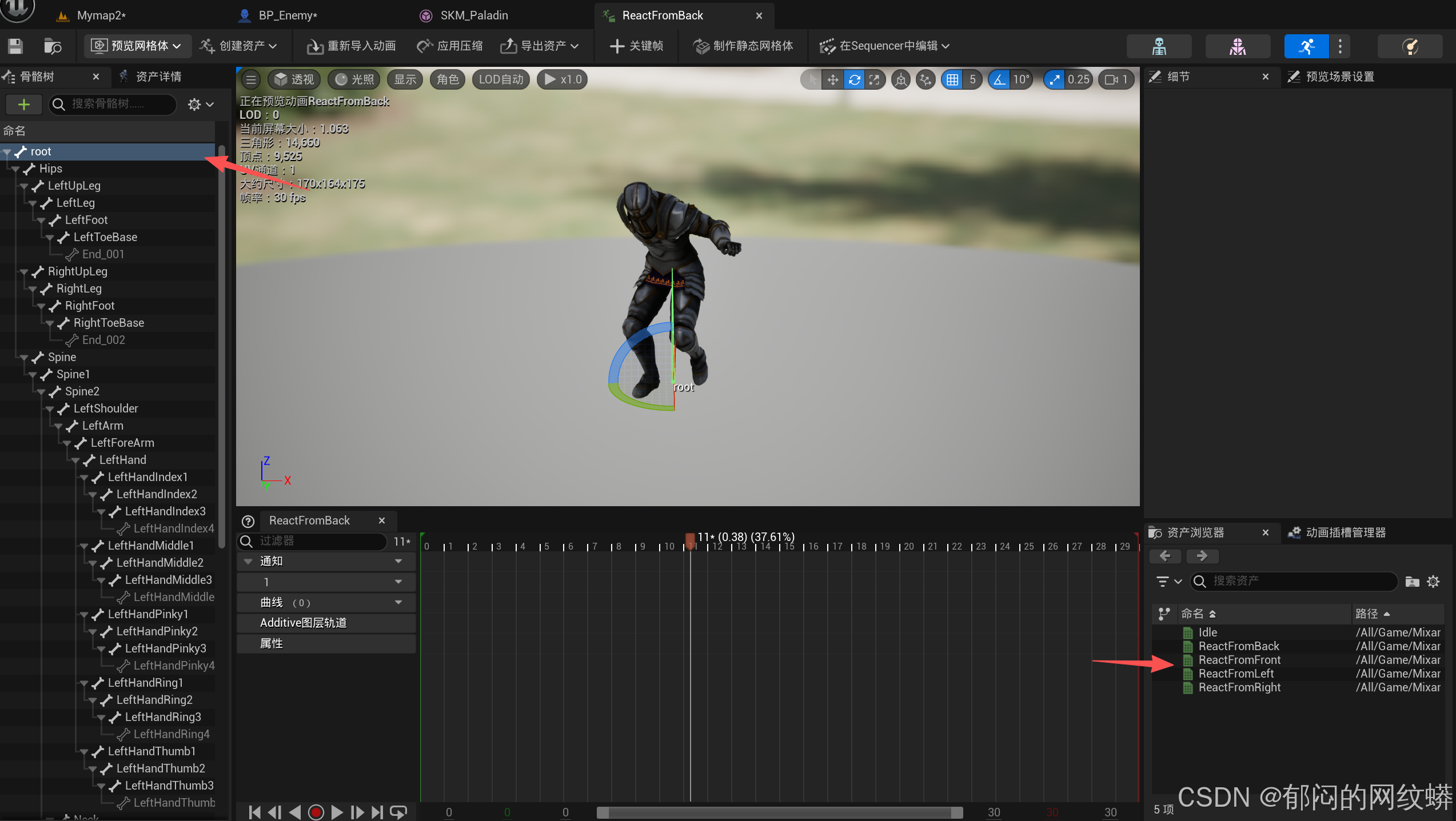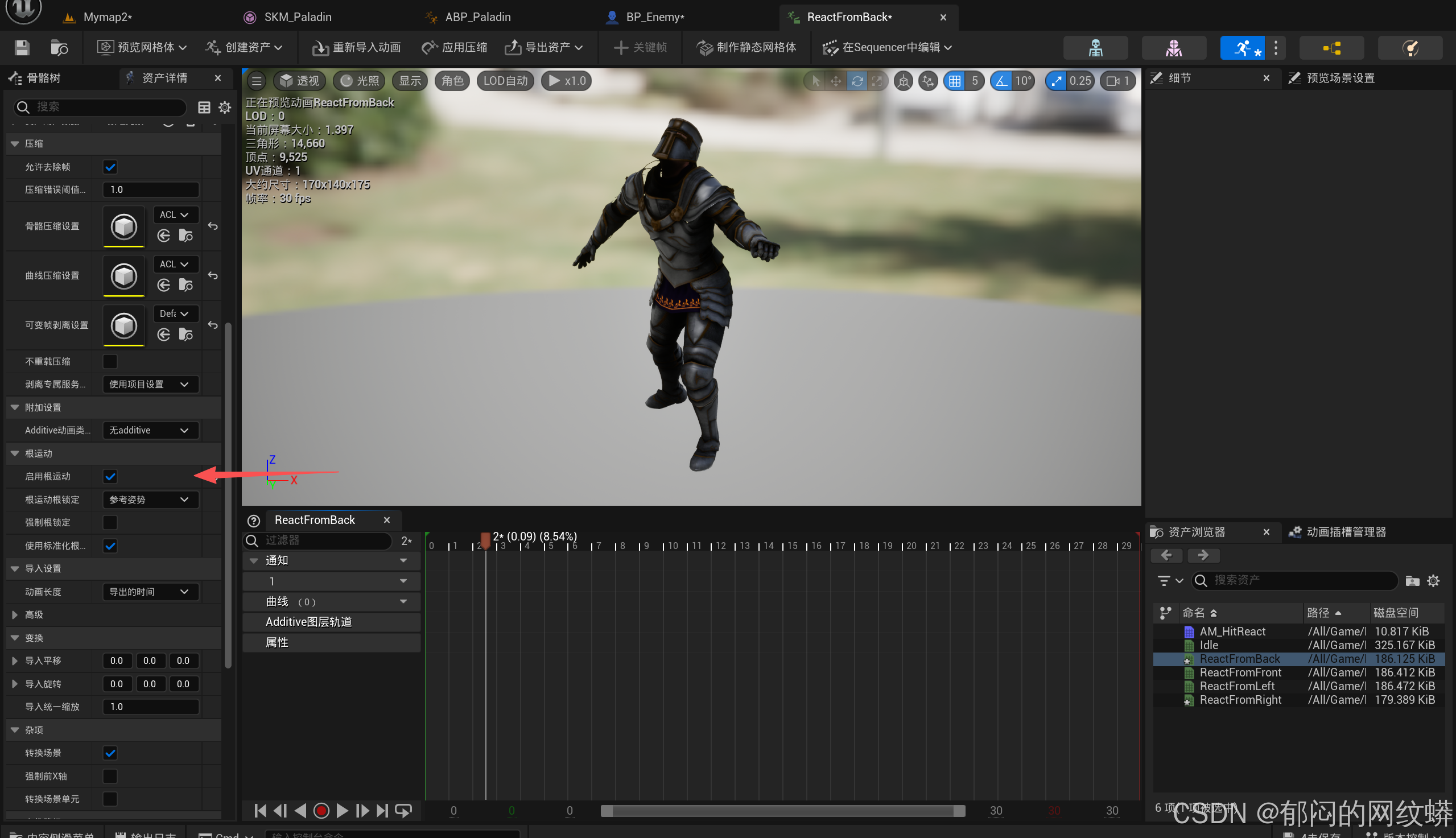 我要进入该动画,确保它使用根运动。 - 动画不动,记得回到敌人的动画蓝图里勾选循环动画。