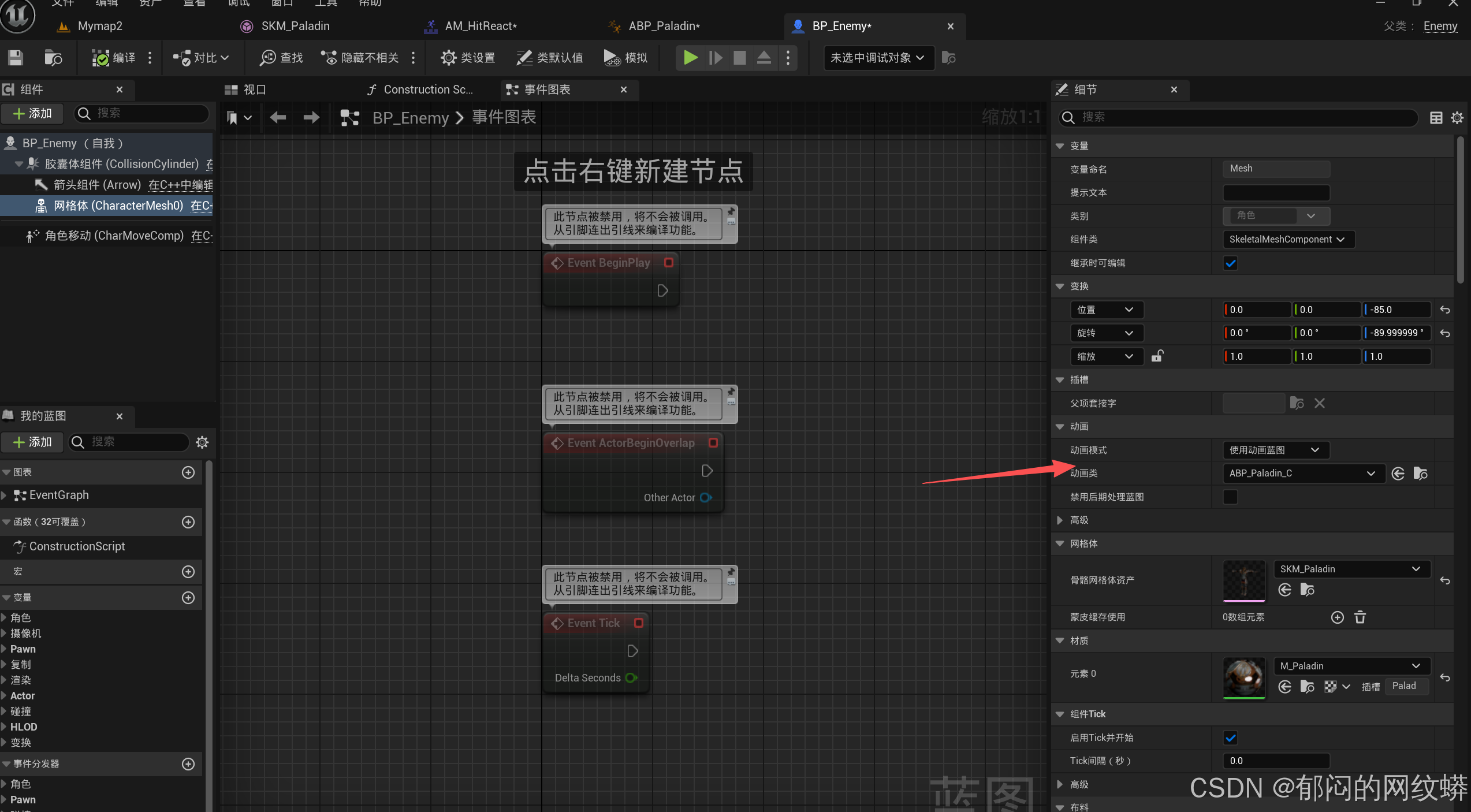 - 只有在动画蓝图使用的该蒙太奇的插槽时才能播放。所以,我们要为该角色建立一个动画蓝图。并在敌人蓝图里设置。
