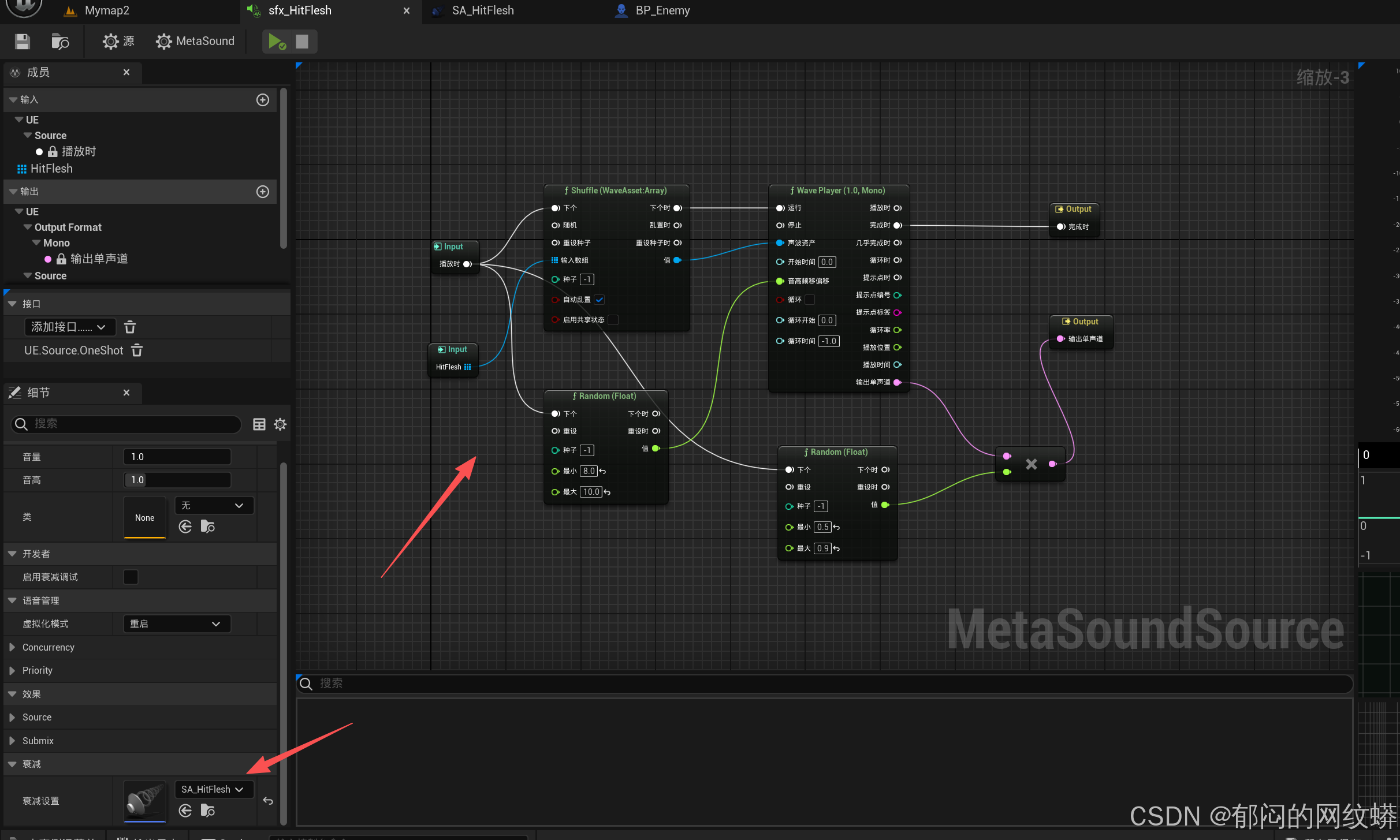 - 利用这些音效搞一个MetaSounds。设置好MetaSound,排除掉不合适的声音。