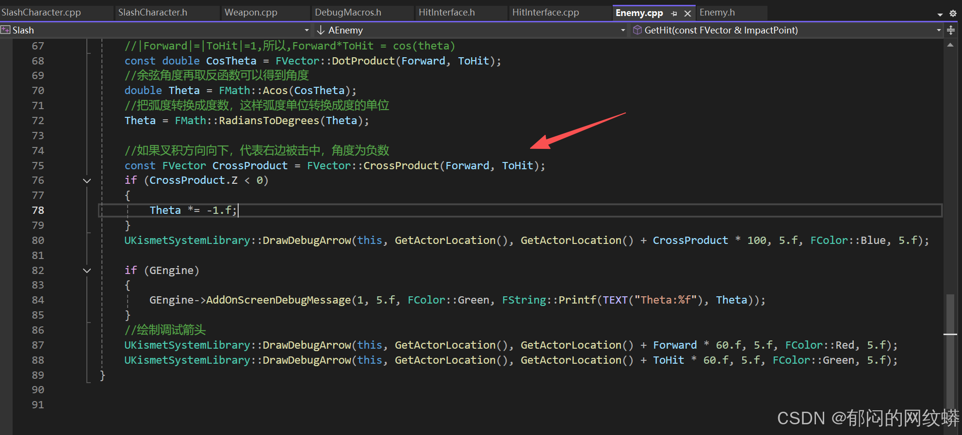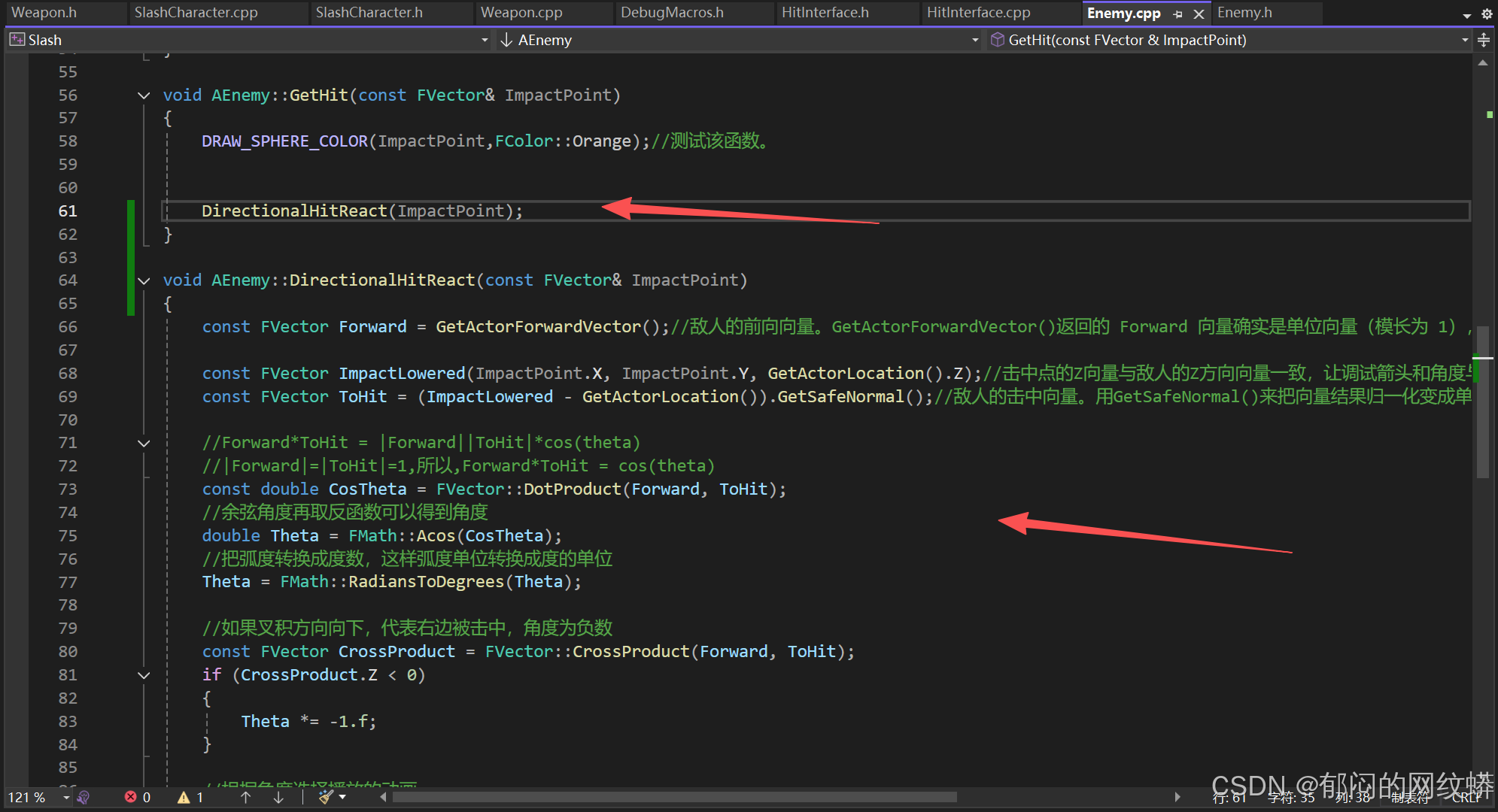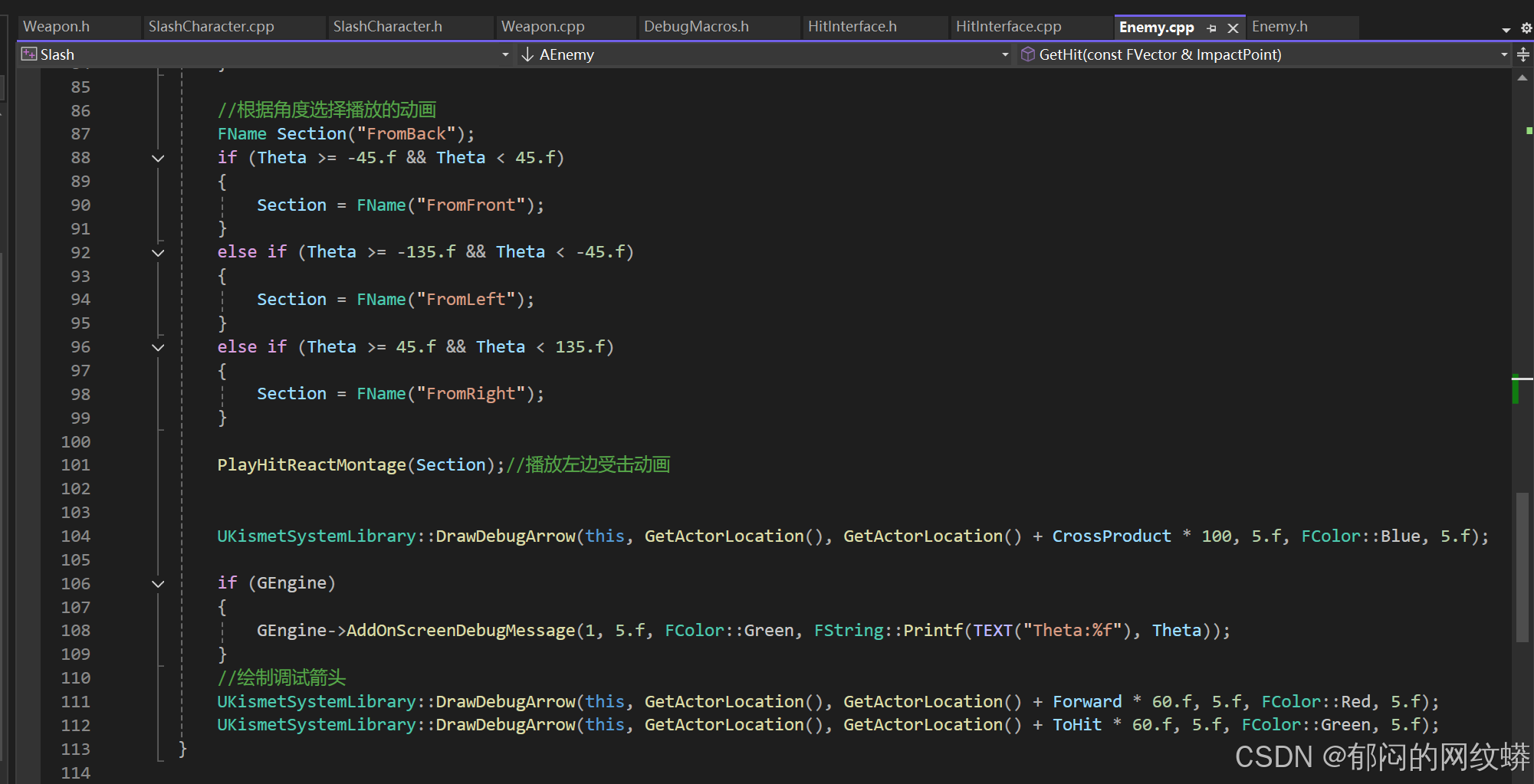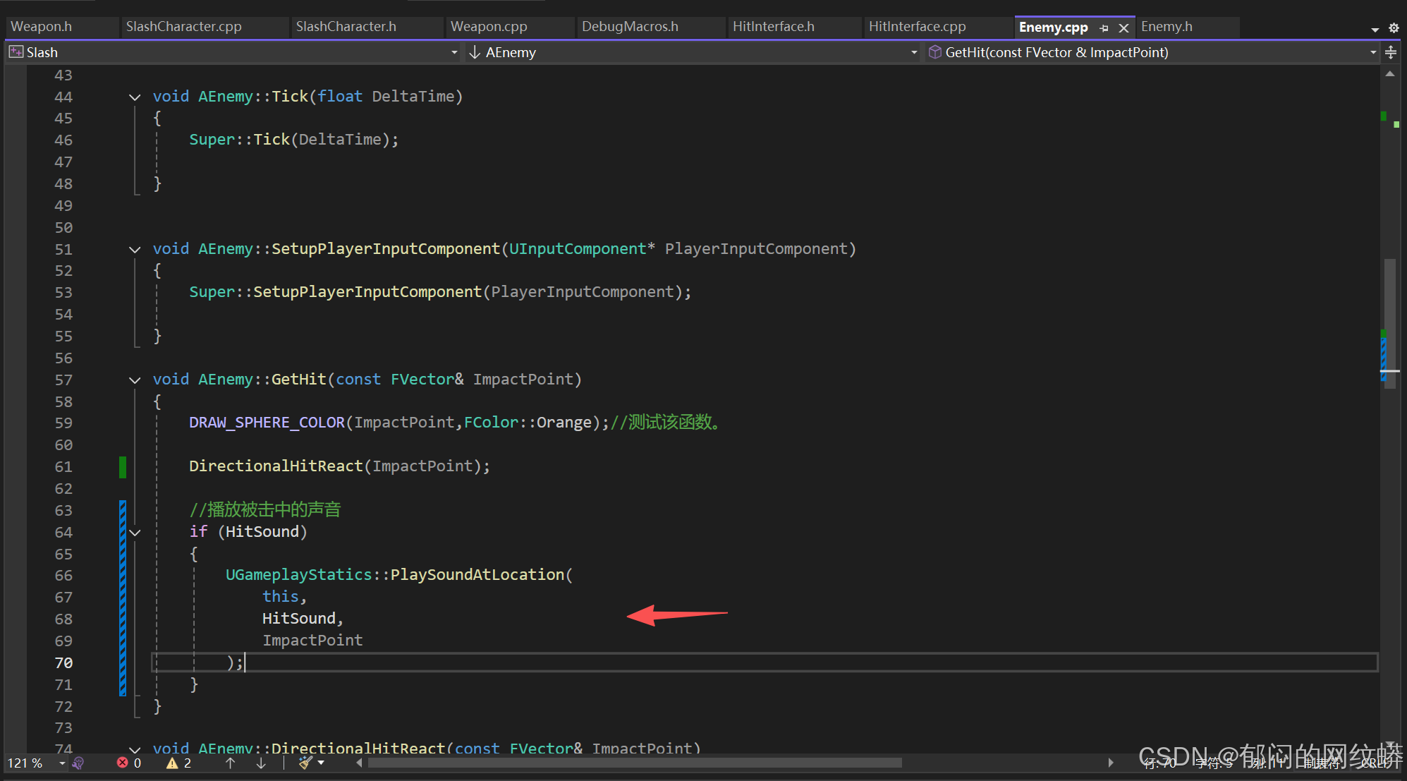 - 在C++里面敌人的代码要继承接口。有个技巧,把敌人写成既是角色也是IHit接口,这样更灵活。