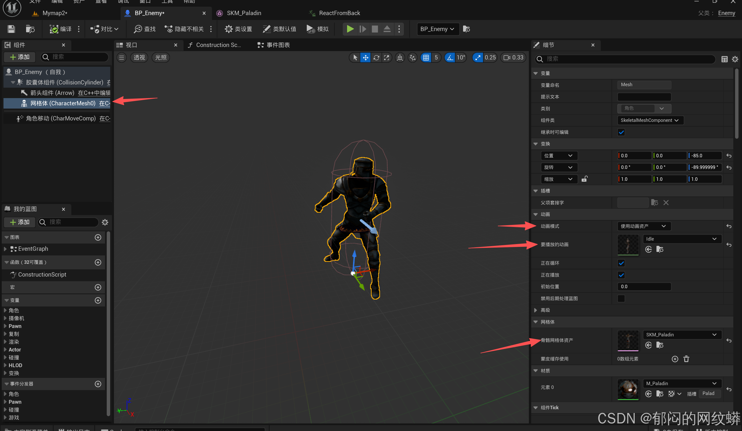 - 在敌人蓝图里设置动画。测试。