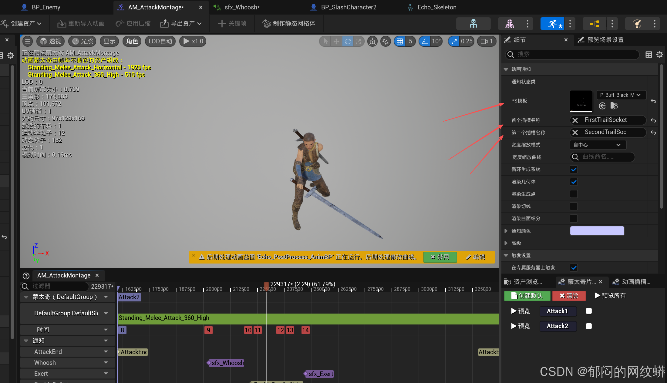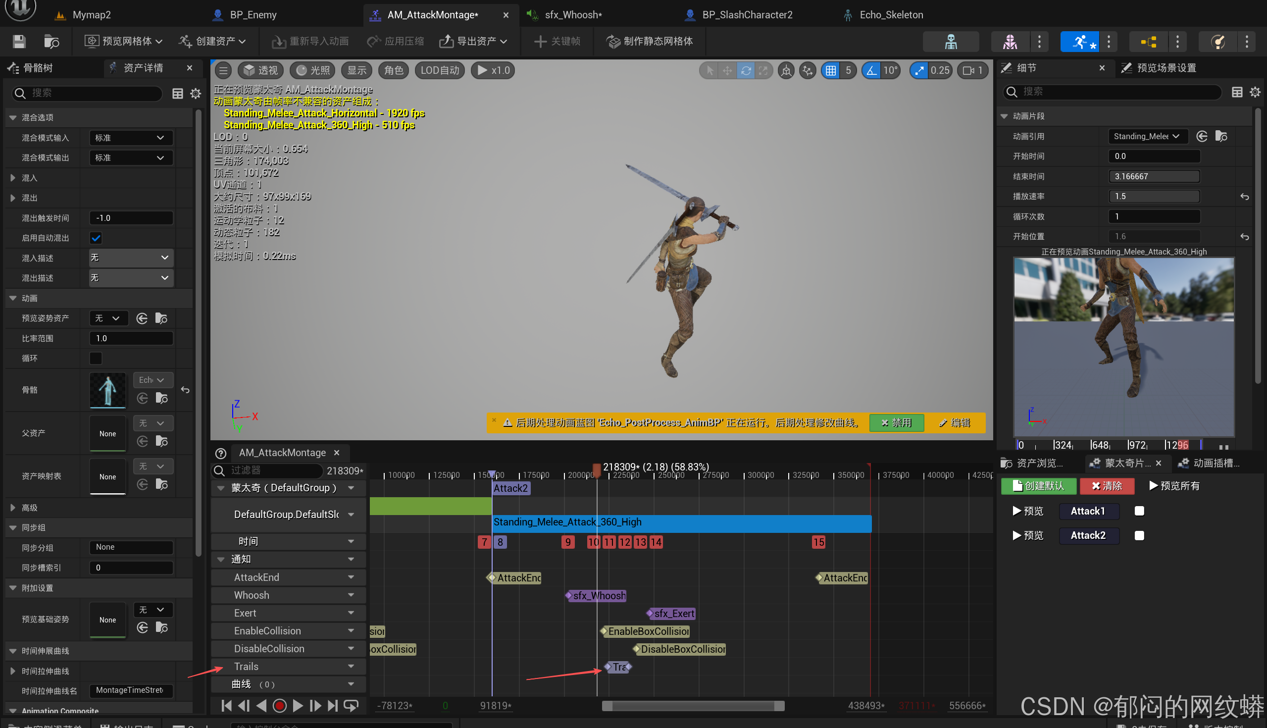 - 进入主角的攻击蒙太奇。加速一下攻击,随便调整一下各个标签位置。