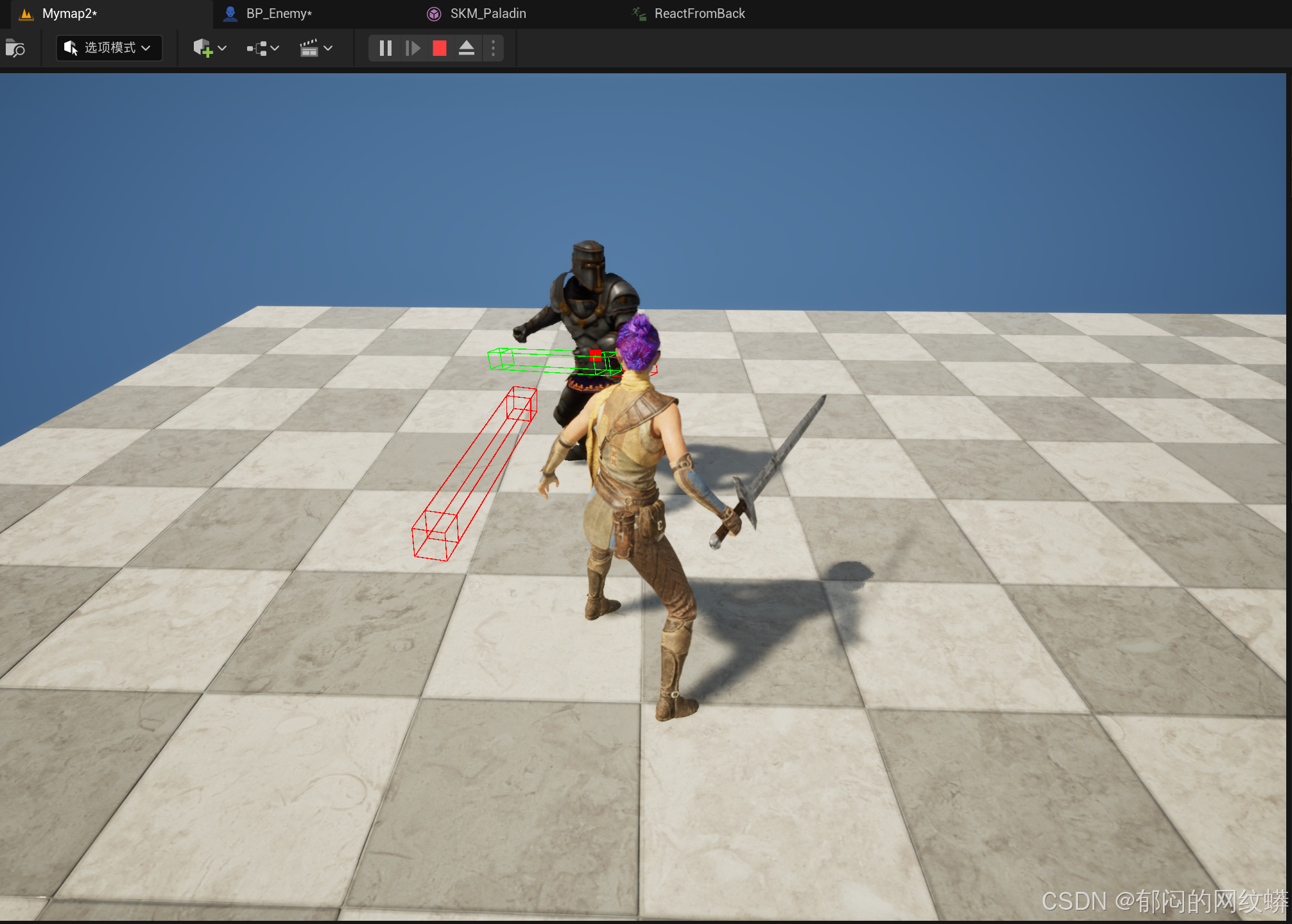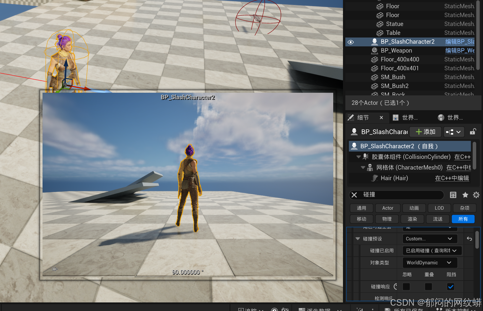- 把敌人拖到场景测试劈砍,如果没反应,可能是敌人蓝图里面没有设置物理资产,记得勾选。