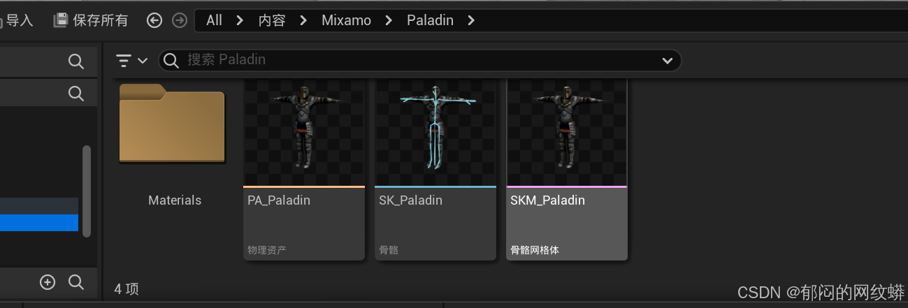- 去mixamo选择敌人的网络(Mesh)模型。导入项目,知道那些有用那些没用。