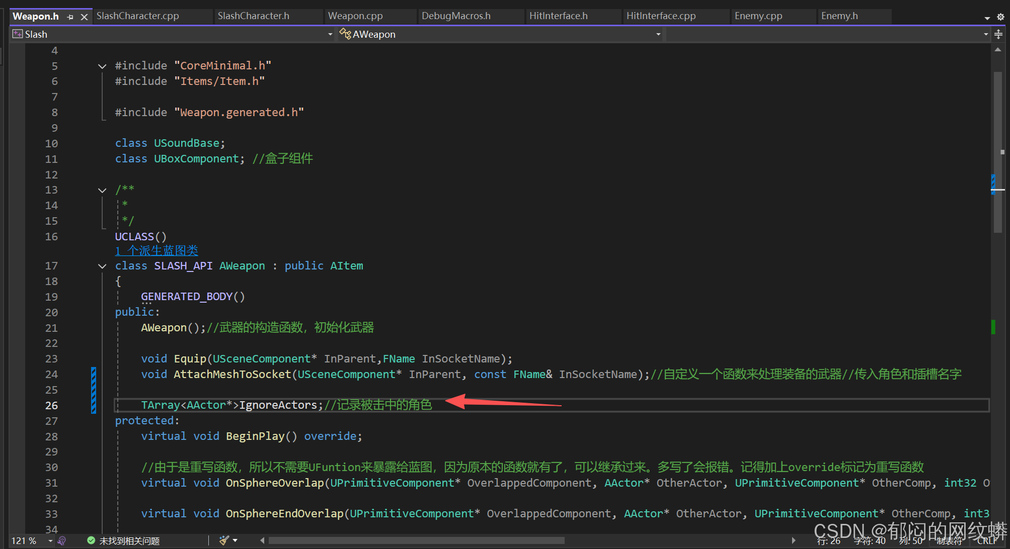 AItem* OverlappingItem; //创建一个重叠的游戏物品,需要在物品重叠时,才能从物品类里设置这个属性