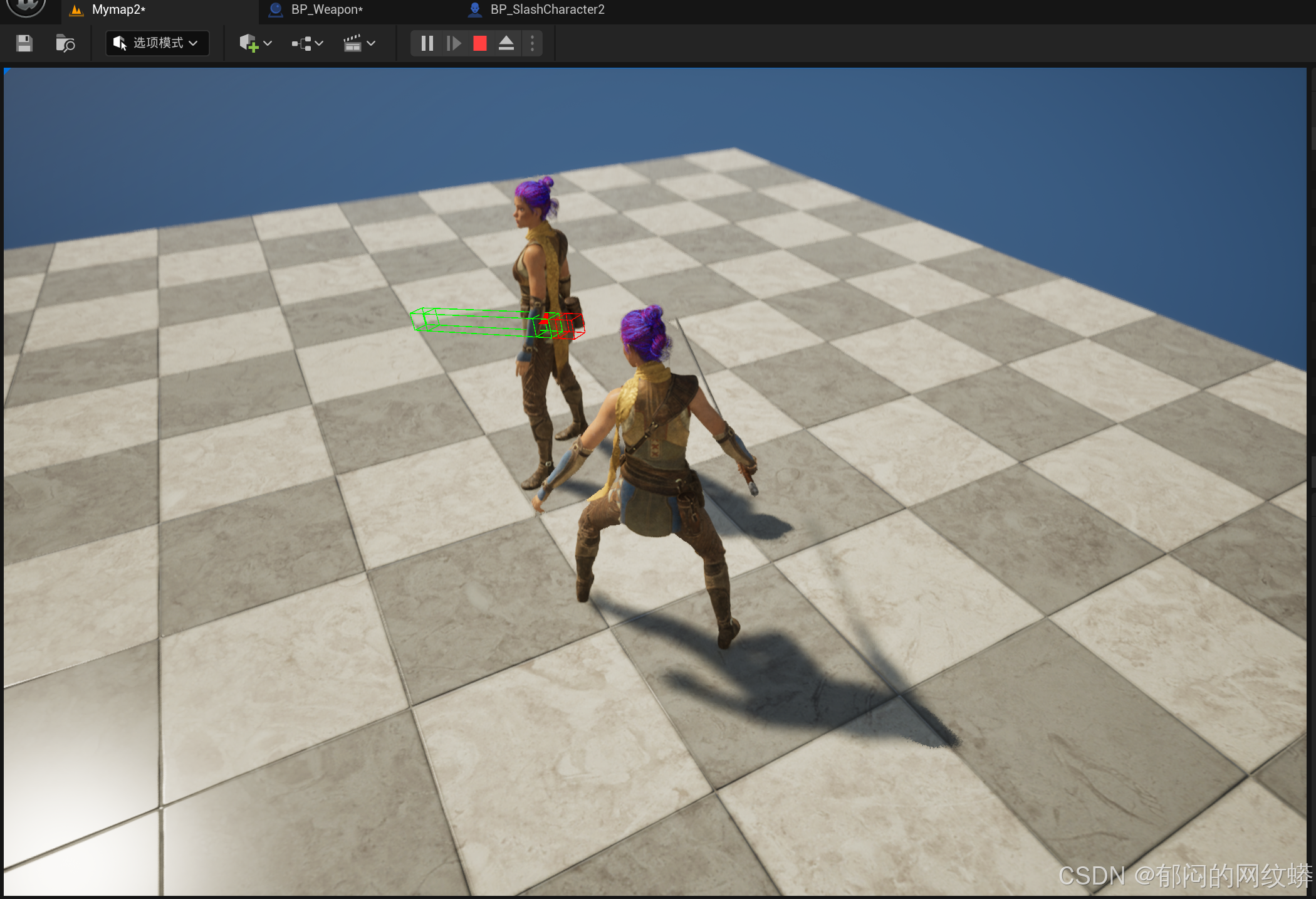 - 之后去掉调试线条看看效果。记得把武器的调试追踪也关闭,这样每次做盒式追踪时就不会画盒子了。再关闭调试箭头。