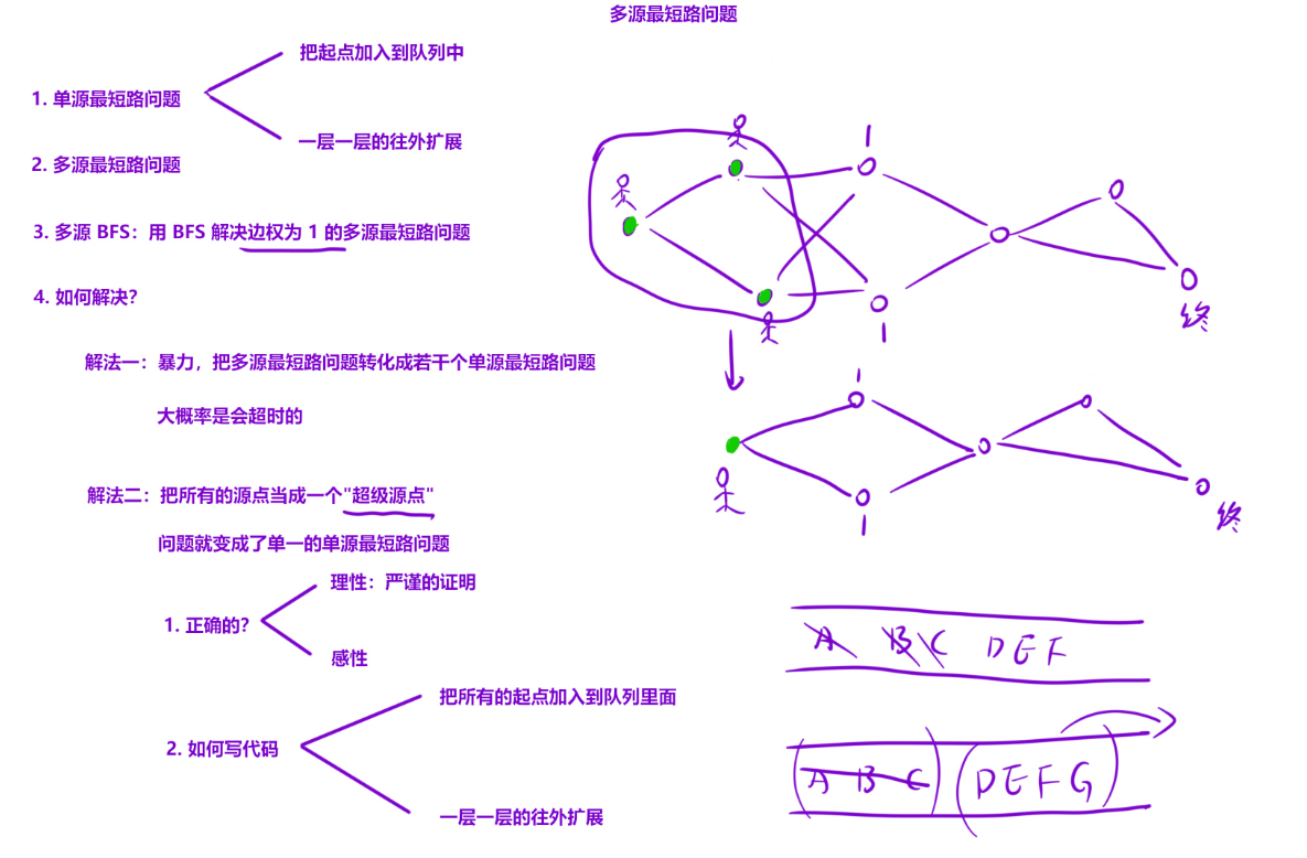 这种题目往往会给你多个起始点,之后让你求边权为1的最短路问题。解决方式还是用队列