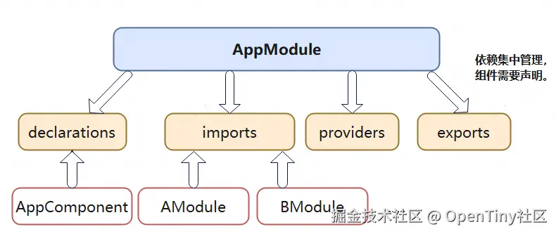 其核心逻辑是"模块中心化"------所有组件必须归属某个模块,依赖通过模块统一导入,服务通过模块提供作用域,这种设计非常适合大型项目的分层与分工。