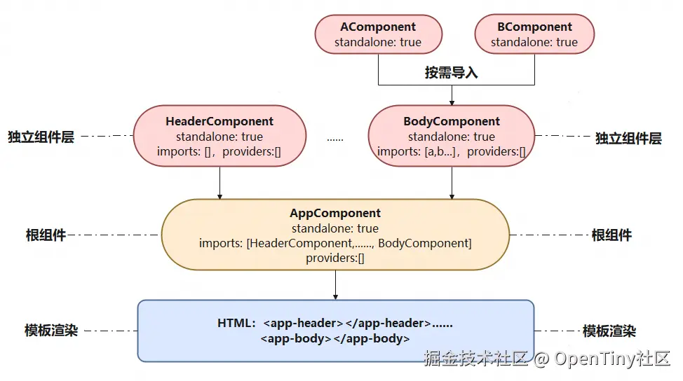 补充说明:独立组件可直接导入其他独立组件,无需额外声明;依赖导入遵循"按需导入"原则,仅导入当前组件所需模块,减少冗余。