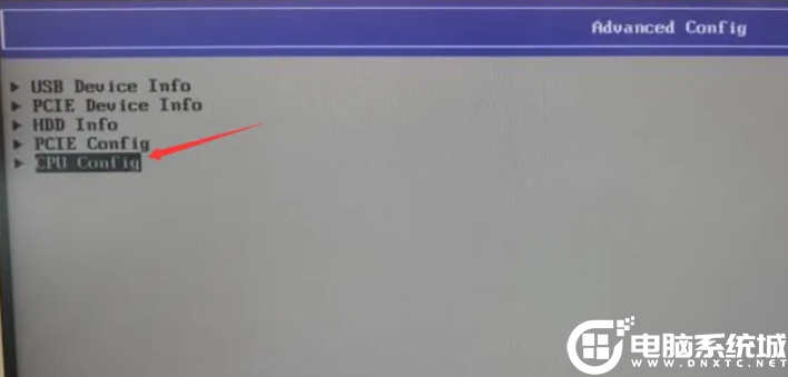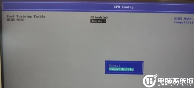 2,依次选择Advanced Config ->CPU Config ->BIOS MODE进入,如下图所示;