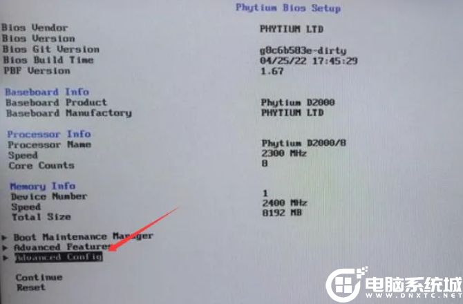 1,在安装系统之前需要进入UEFI,更改Setup界面的配置,出现飞腾LOGO时按F8进入setpu界面,如下图所示;