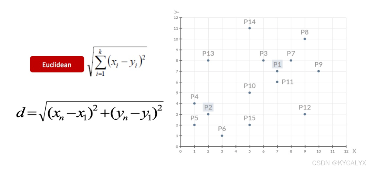 在聚类算法中根据样本之间的相似性,将样本划分到不同的类别中,对于不同的相似度计算方法,会得到不同的聚类结果,常用的相似度计算方法有欧式距离法。