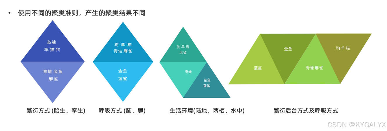 - 图像分割,降维,识别;离群点检测;信用卡异常消费;发掘相同功能的基因片段